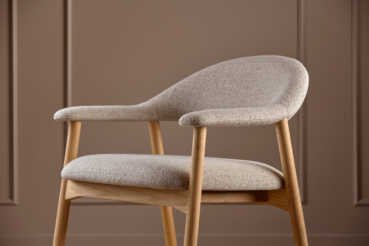 Fotoliu Addi, Actona, 70x70.5x76 cm, tesatura Boucle/lemn de stejar, bej