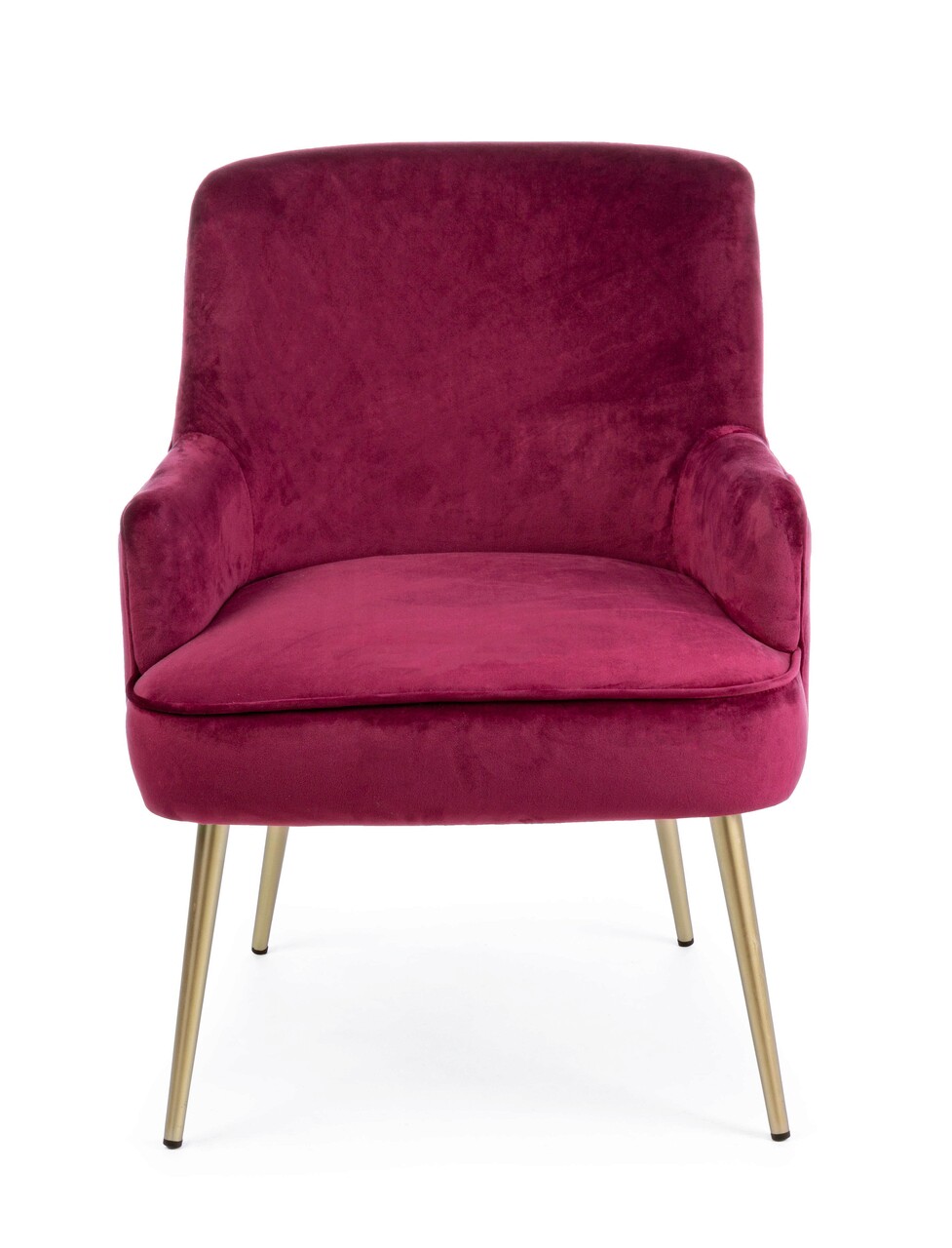 Fotoliu, Clelia, Bizzotto, 60x66x82 cm, lemn de pin/catifea, rosu vin