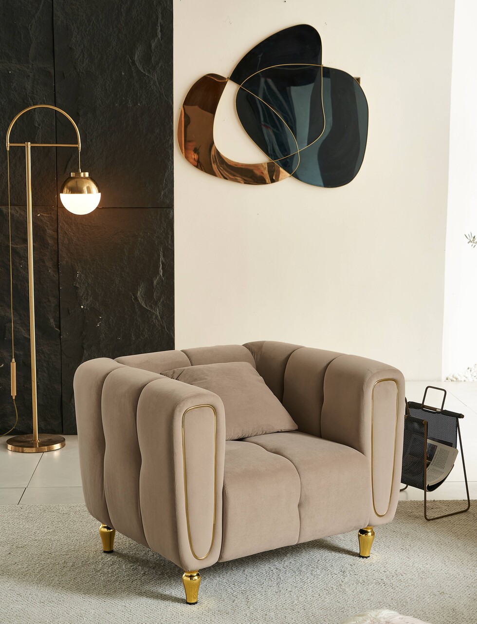 Fotoliu cu perna decorativa Alma, Mauro Ferretti, 81x97x71 cm, eucalipt/pin/catifea, gri/auriu