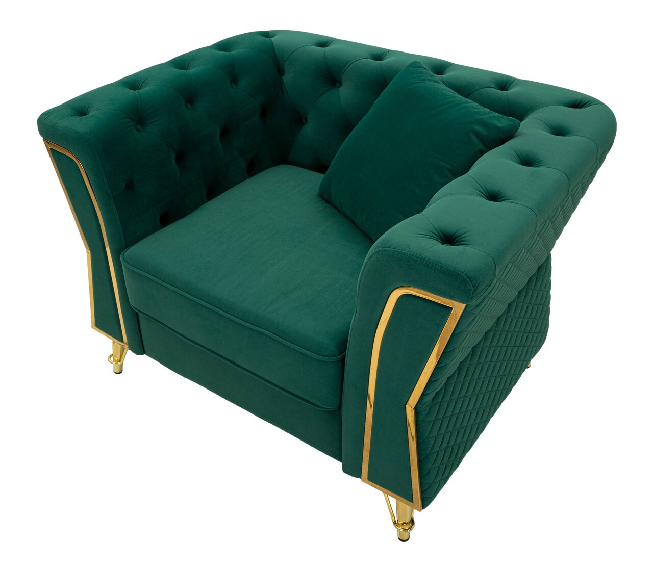 Fotoliu cu perna decorativa Emy, Mauro Ferretti, 104x83x76 cm, eucalipt/pin/catifea, verde/auriu