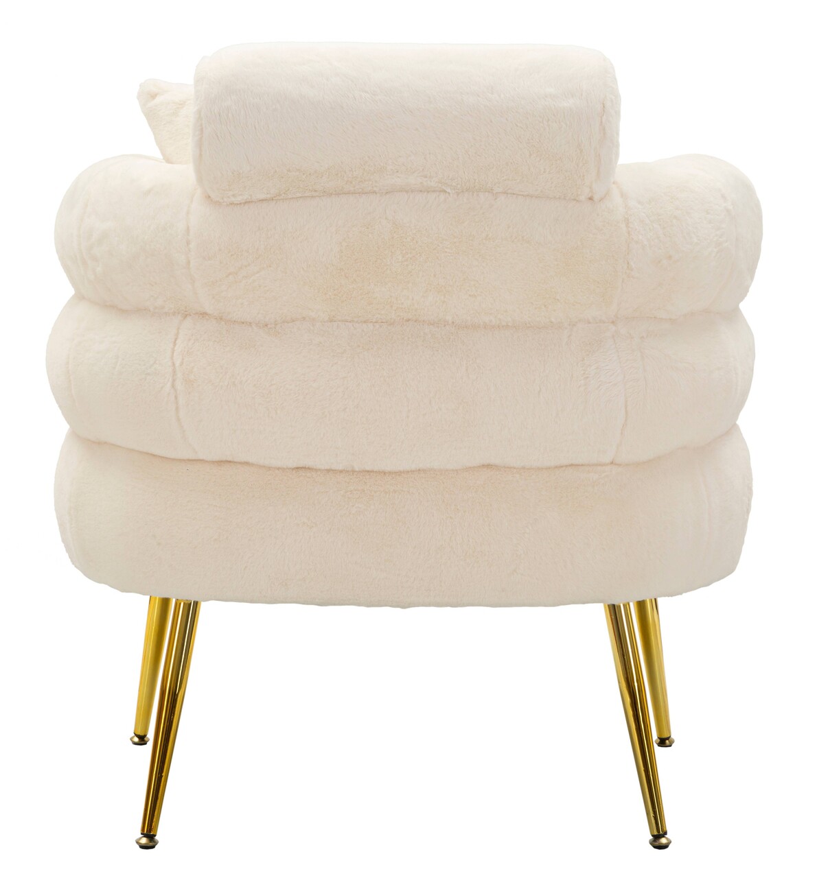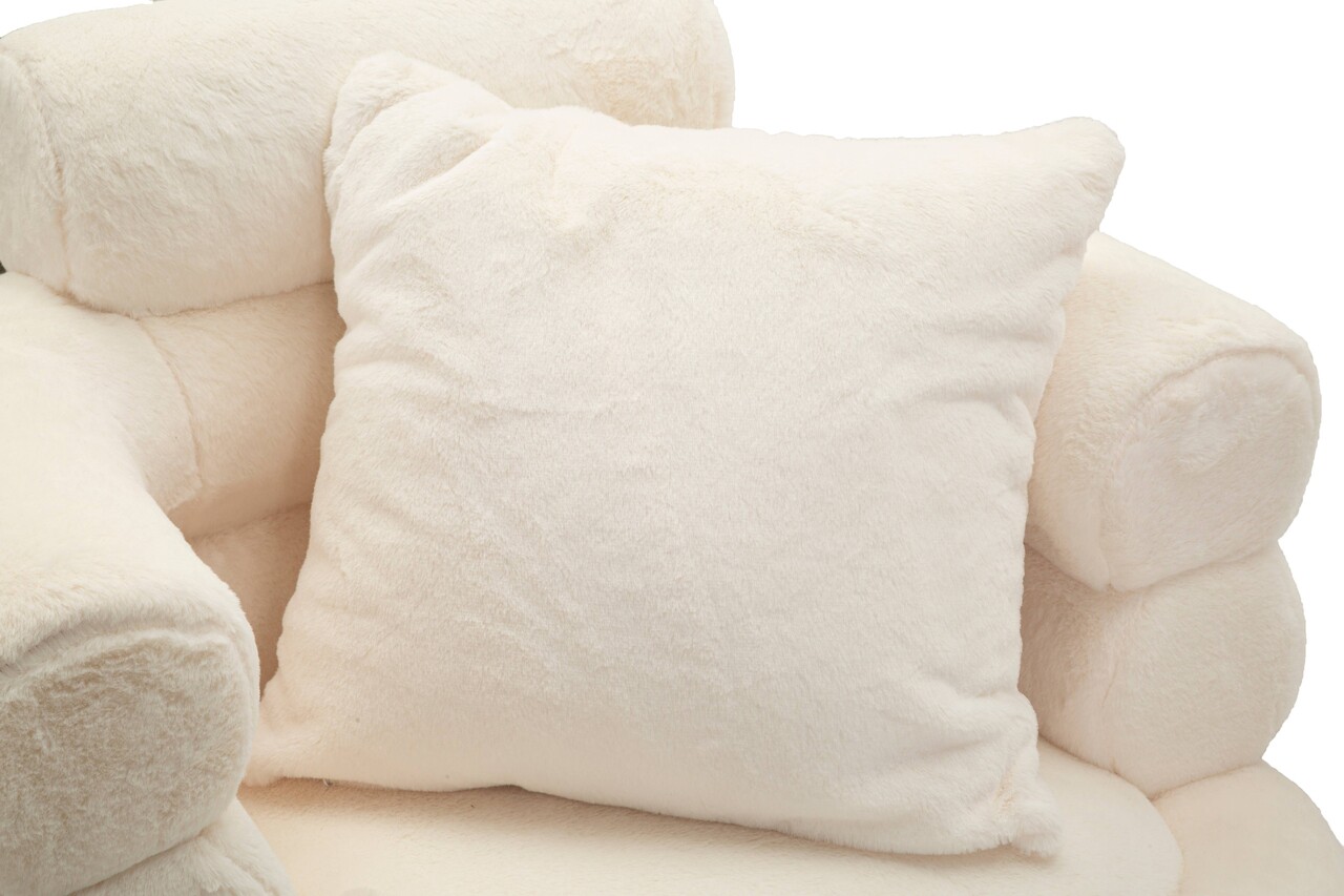 Fotoliu cu perna decorativa Soffy, Mauro Ferretti, 78x68x85 cm, lemn de pin/blana artificiala, alb/auriu