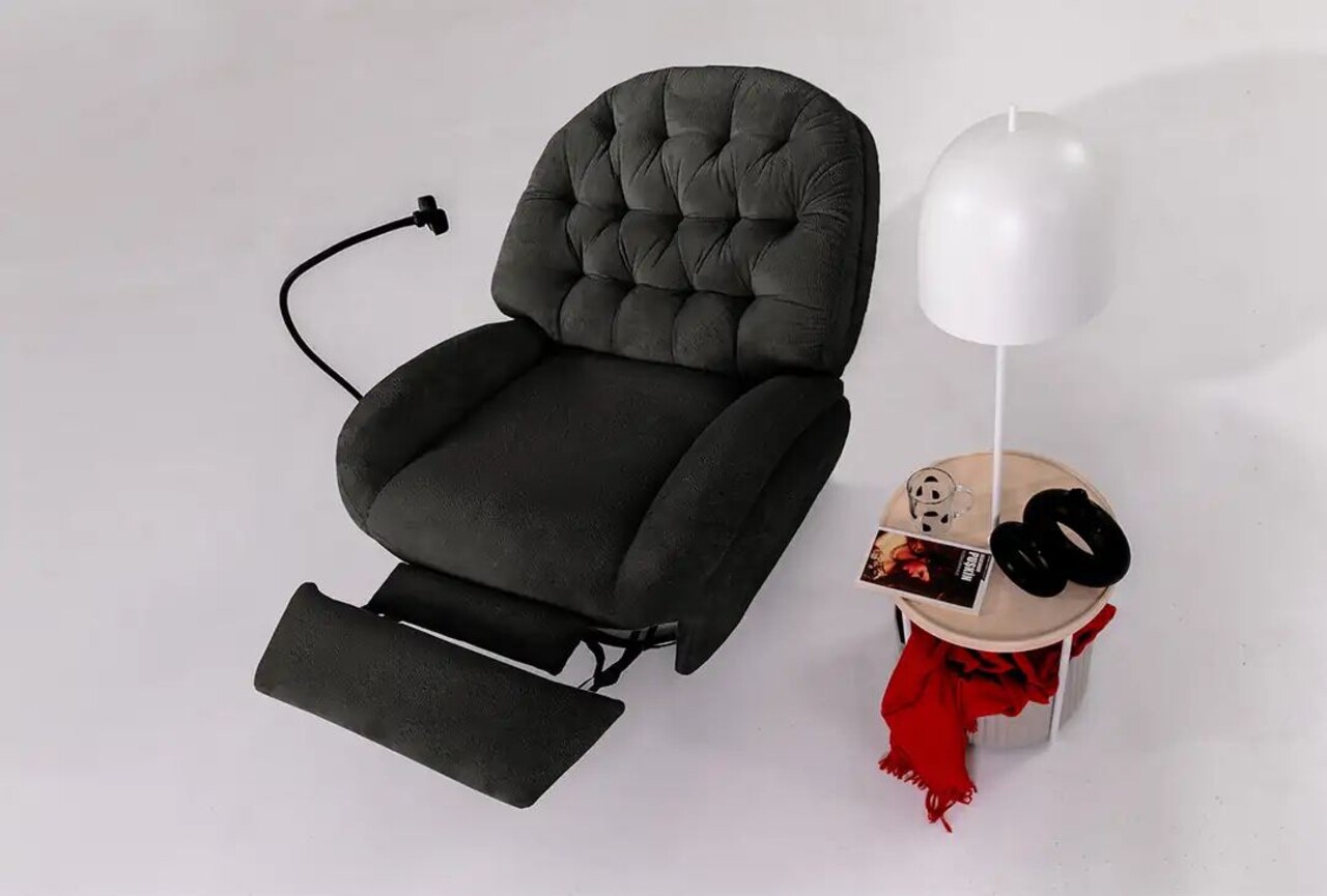 Fotoliu cu recliner, Atelier del Sofa, 752EST1512, Lemn de carpen;PAL, Negru