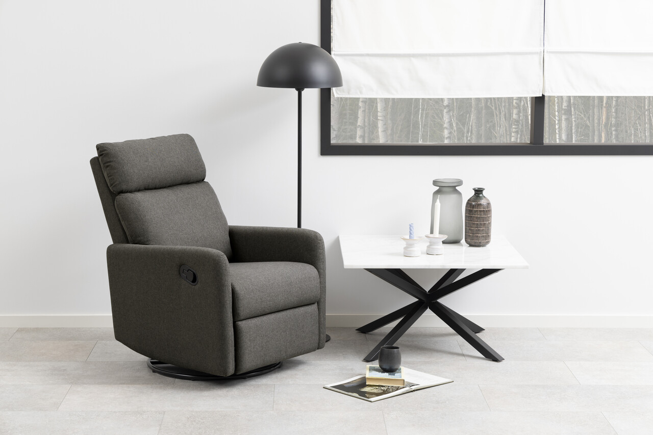 Fotoliu cu recliner Mikkeli, Actona, 67x93.5x99 cm, rotativ, poliester/otel, gri