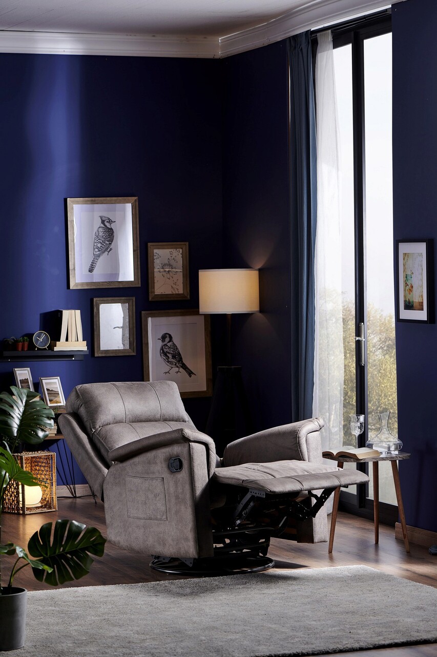 Fotoliu cu recliner, Niron, Joyful TV, 80x105x80 cm, Recliner cu mecanism manual si rotatie la 360°, Gri