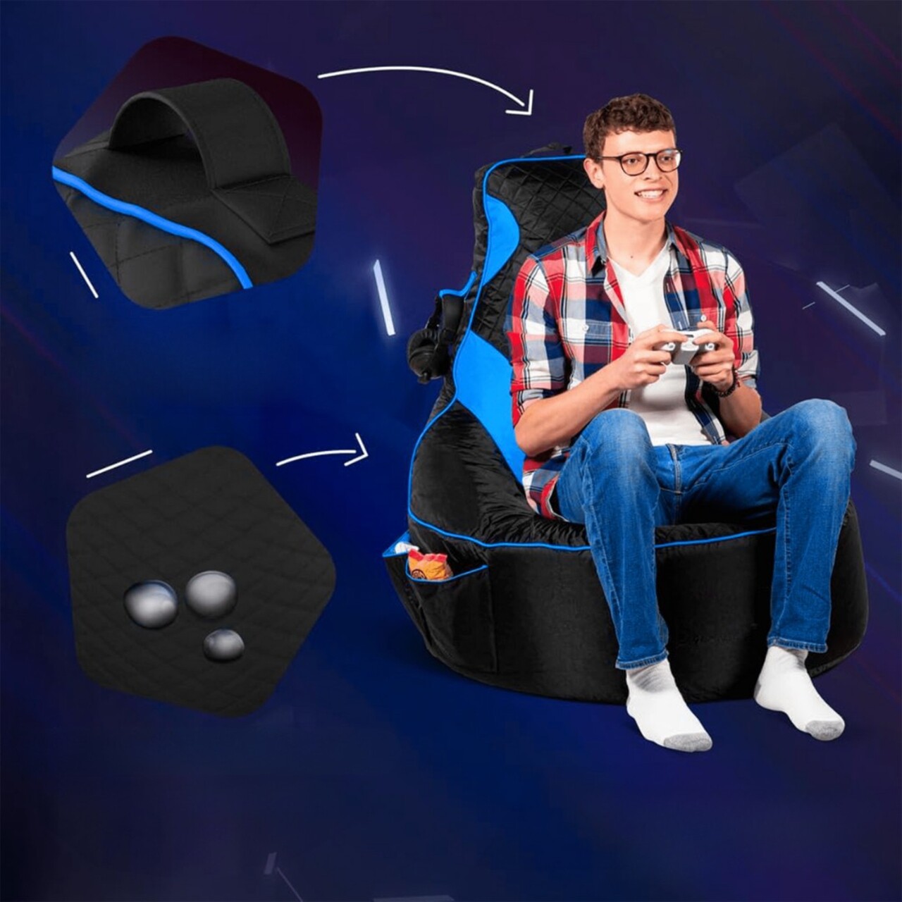 Fotoliu de gradina Bean Bag, Ferndale, 248FRN1605, 100% STYROSPUMĂ RECICLATĂ DE ÎNALTĂ DENSITATE, Albastru/Negru