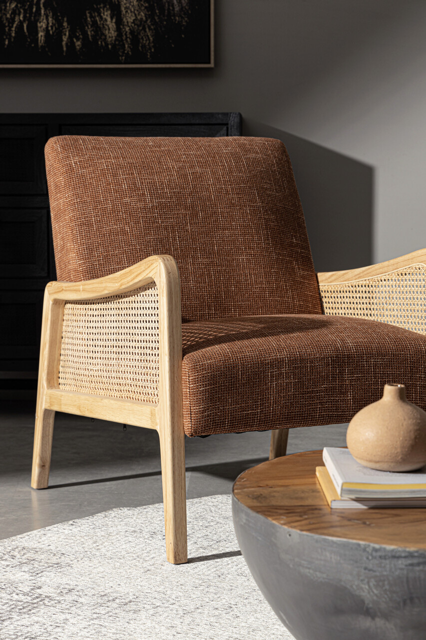 Fotoliu Deanna Autumn, Bizzotto, 67.5 x 82 x 83 cm, lemn de pin/ratan/catifea