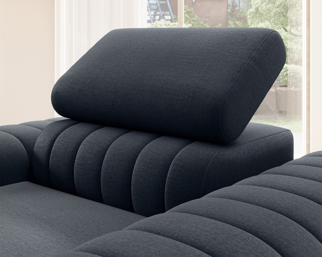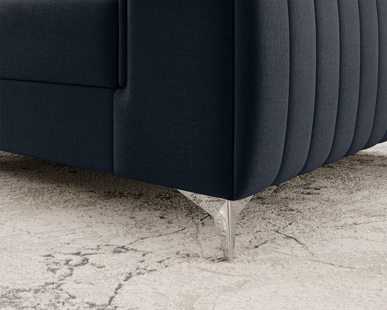 Picioarele solide din otel cromat, cu o inaltime de 9 cm, adauga un plus de eleganta si rafinament, oferind in acelasi timp stabilitate si durabilitate. Confortul este garantat de sezutul umplut cu spuma poliuretanica T30, combinata cu spuma HR, care se muleaza perfect pe corp, asigurand o senzatie placuta de moliciune. Spatarul, umplut cu spuma T2540, ofera sustinere optima pentru spate, prevenind disconfortul chiar si dupa ore indelungate de utilizare.