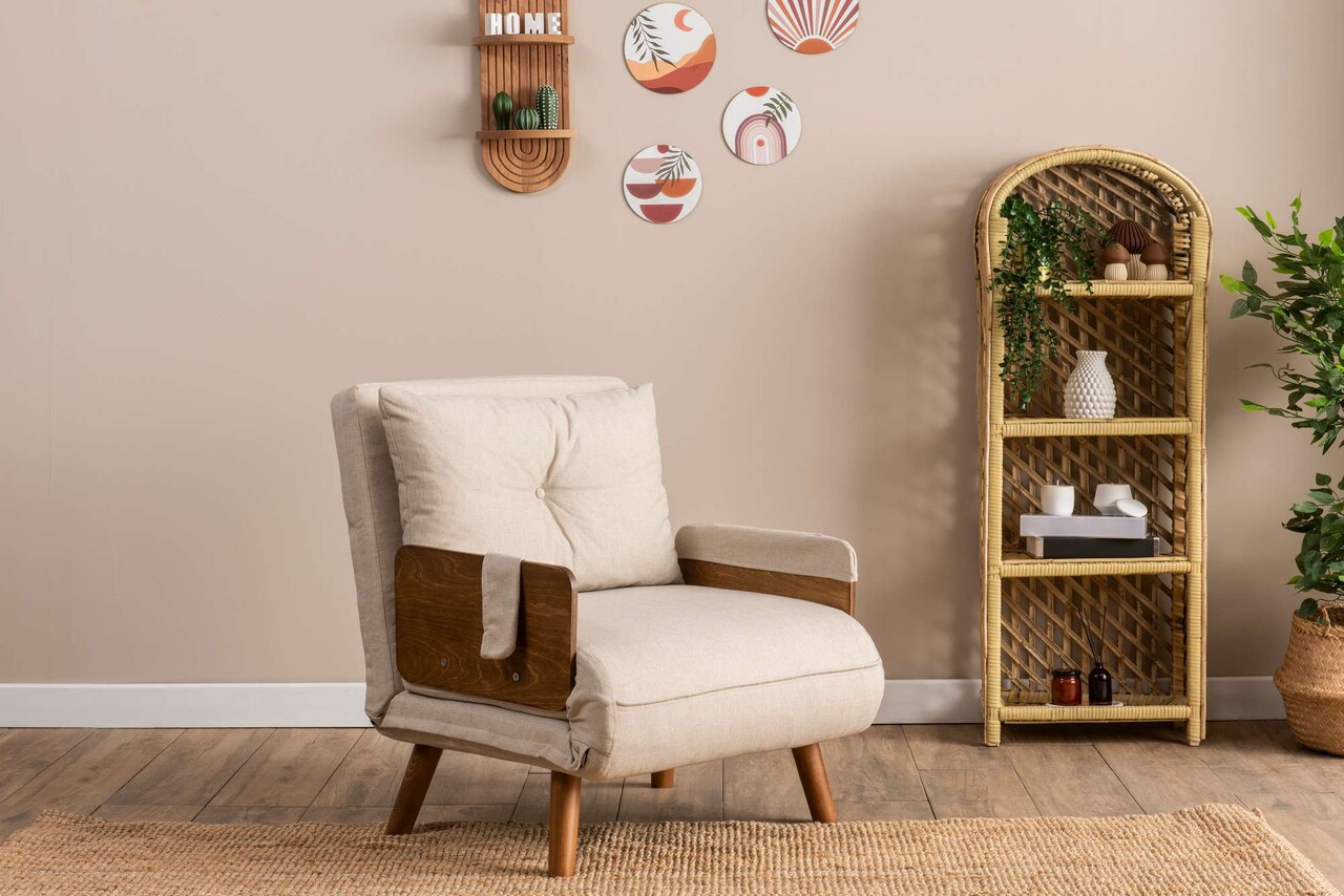 Fotoliu extensibil, Futon, 859FTN2336, 77x70x82 cm, poliester/metal , crem