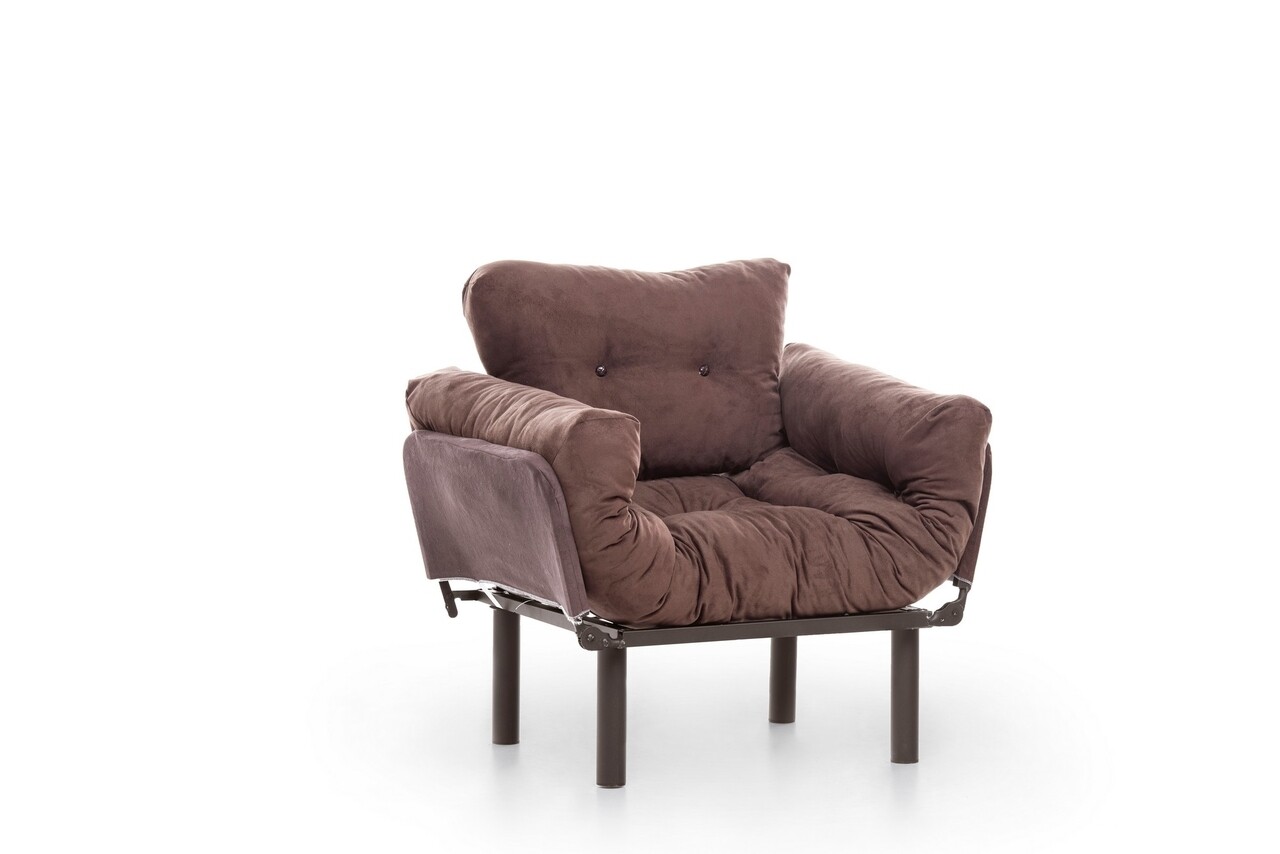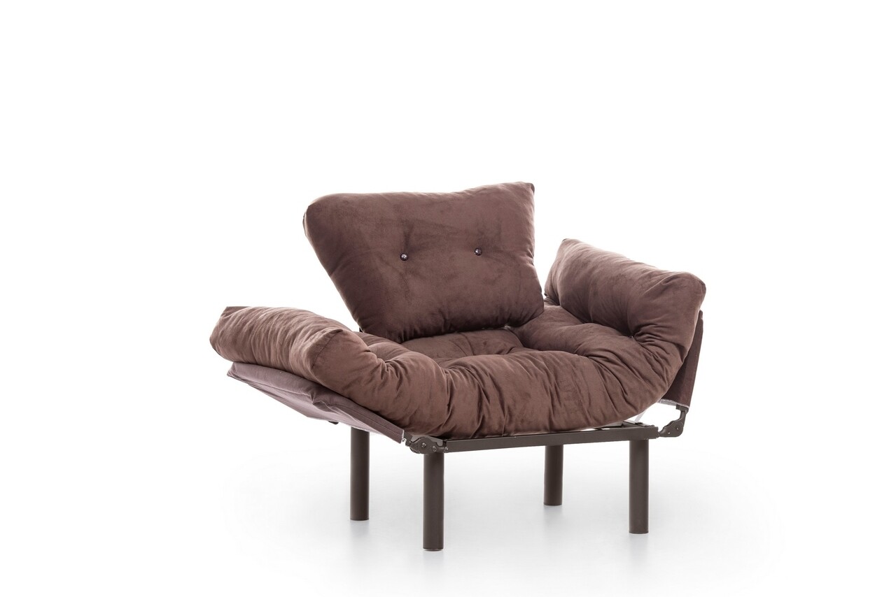 Fotoliu extensibil Nitta Single, Futon,135x70 cm,metal, maro