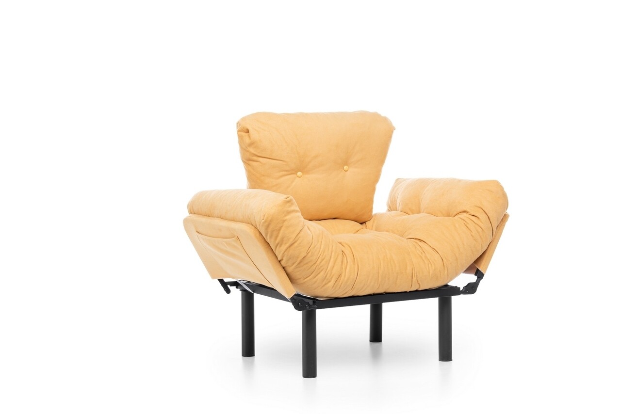 Fotoliu extensibil Nitta Single, Futon,135x70 cm,metal, mustar
