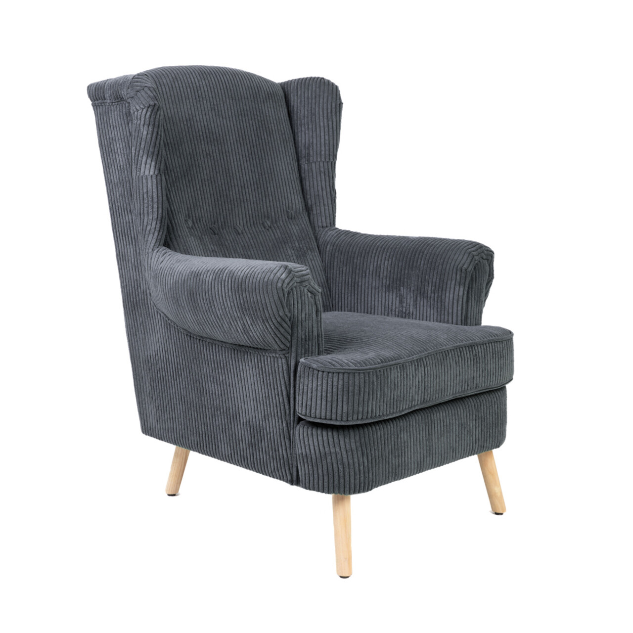 Fotoliu Fossby Faso, Homla, 86x85x108 cm, lemn/catifea din poliester, gri