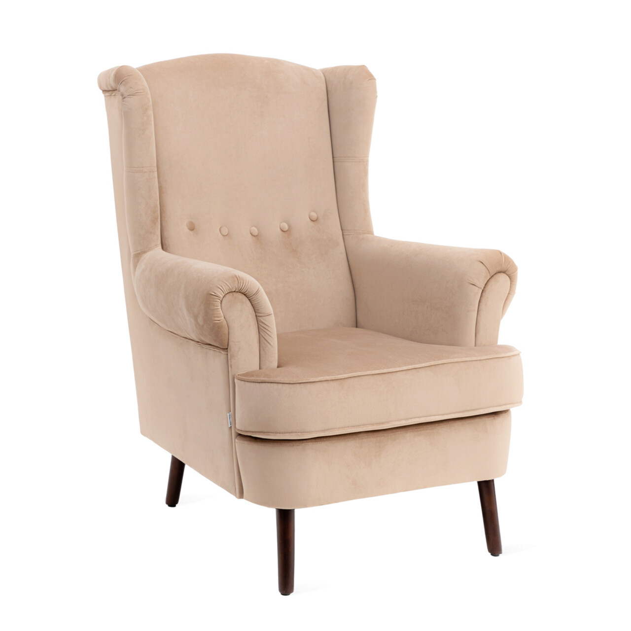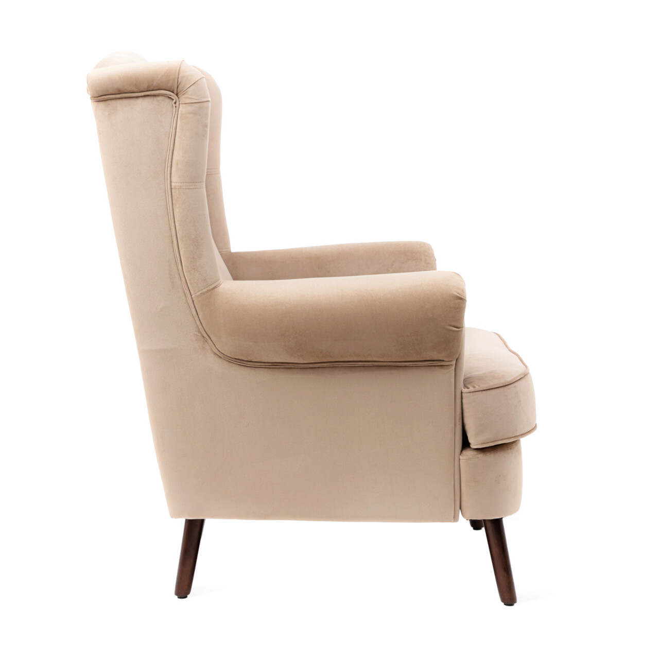 Fotoliu Fossby, Homla, 86x85x108 cm, lemn/catifea din poliester, bej