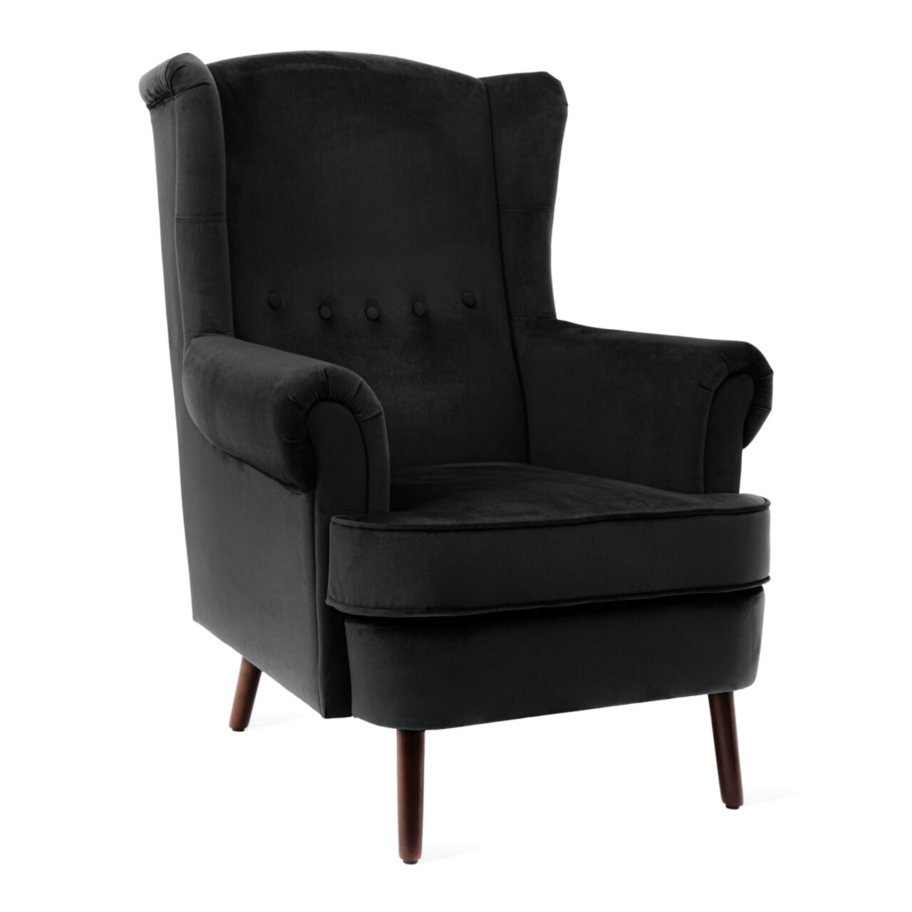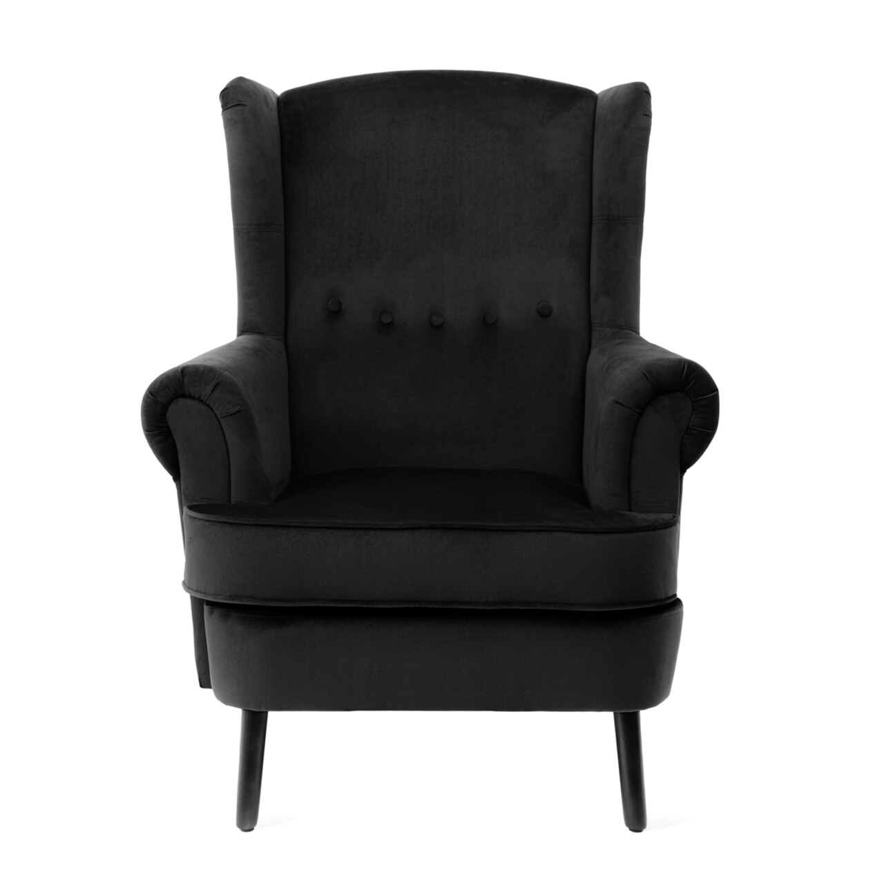 Fotoliu Fossby, Homla, 86x85x108 cm, lemn/catifea din poliester, negru