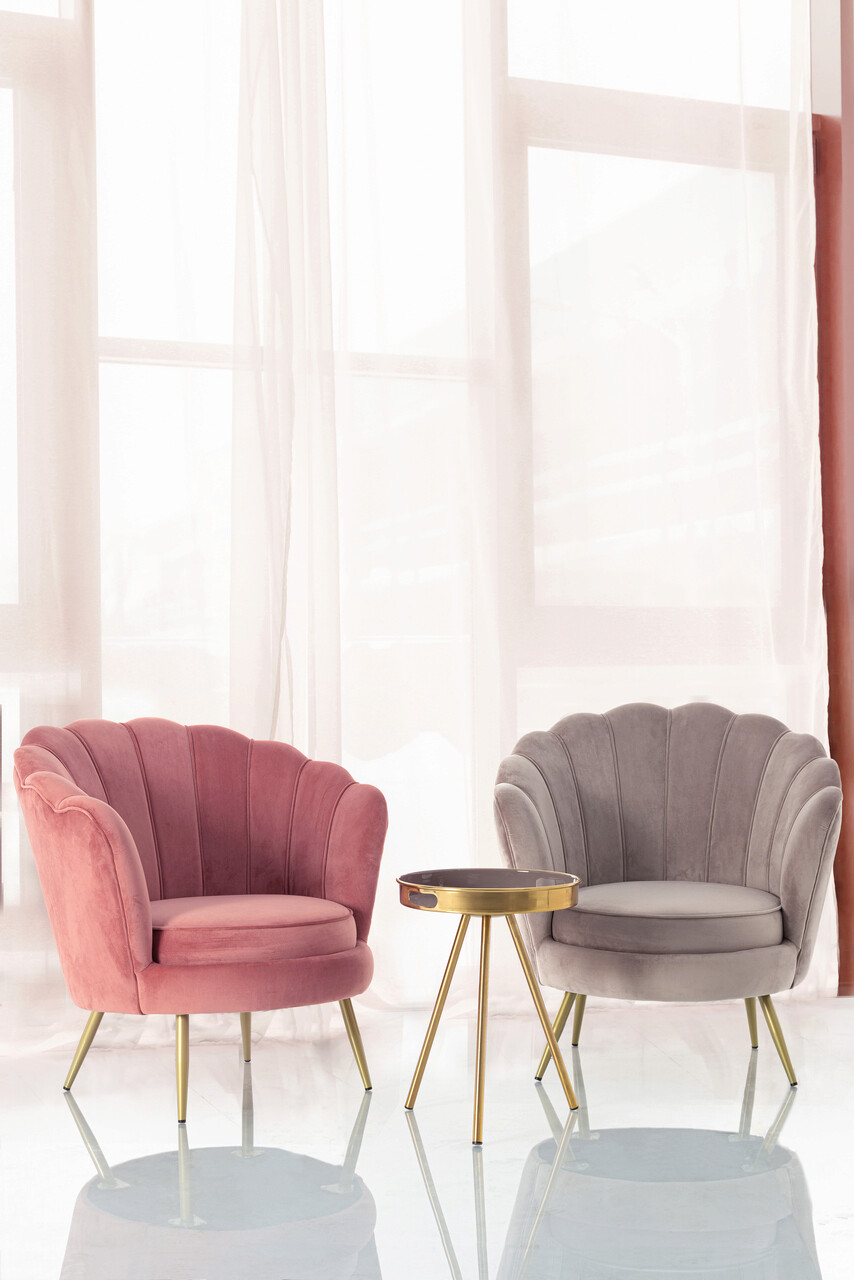 Fotoliu, Giliola, Bizzotto, 80x76x84 cm, lemn de pin/catifea, gri deschis