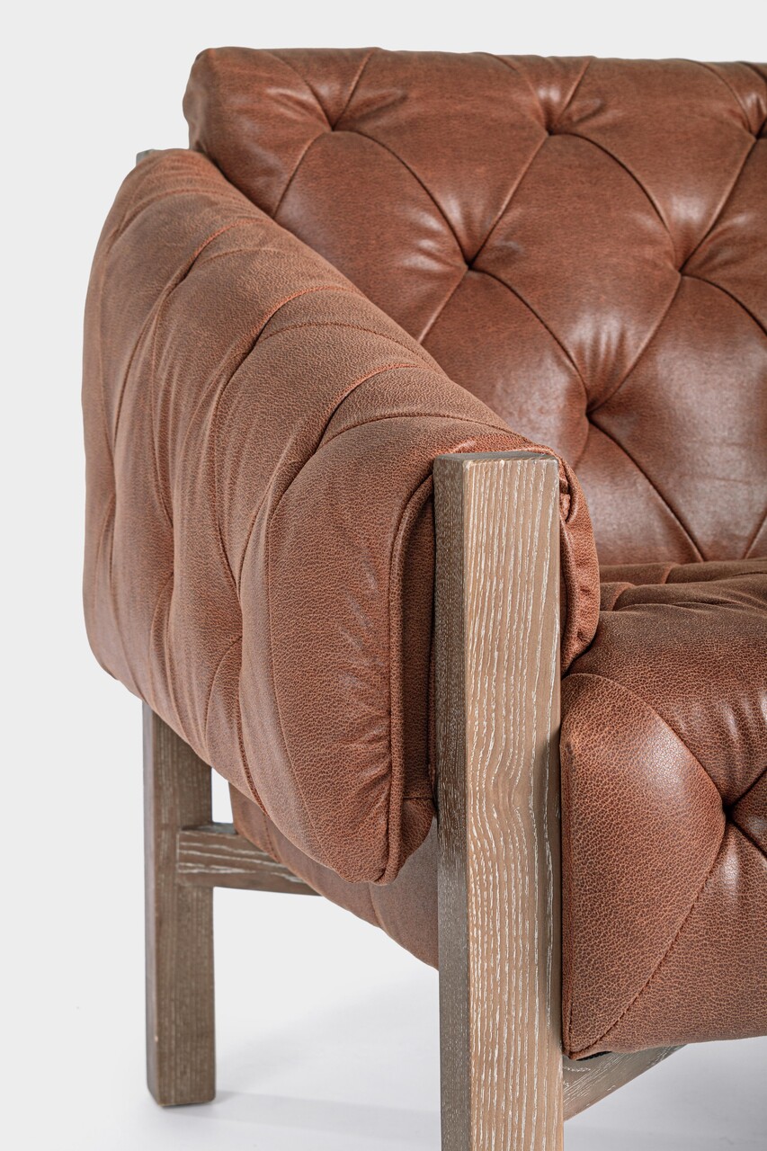 Fotoliu Harrison, Bizzotto, 83.5x81.5x76 cm, lemn de frasin/piele ecologica, maro
