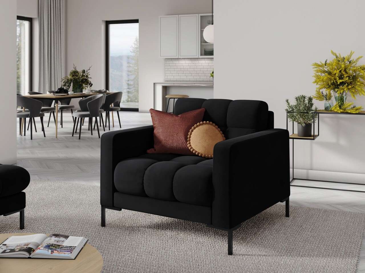 Fotoliu, Mamaia, Micadoni Home, BL, 87x92x75 cm, catifea, negru