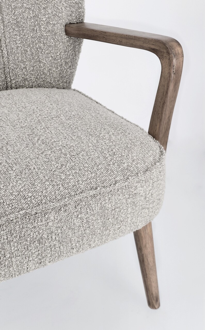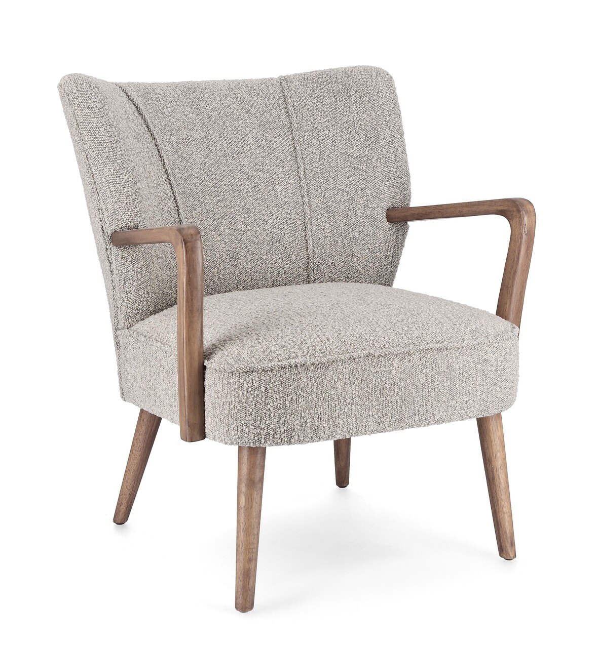 Fotoliu Moritz, Bizzotto, 66.5 x 73.5 x 81.5 cm, lemn de pin/arbore de cauciuc/poliester Boucle, gri piatra