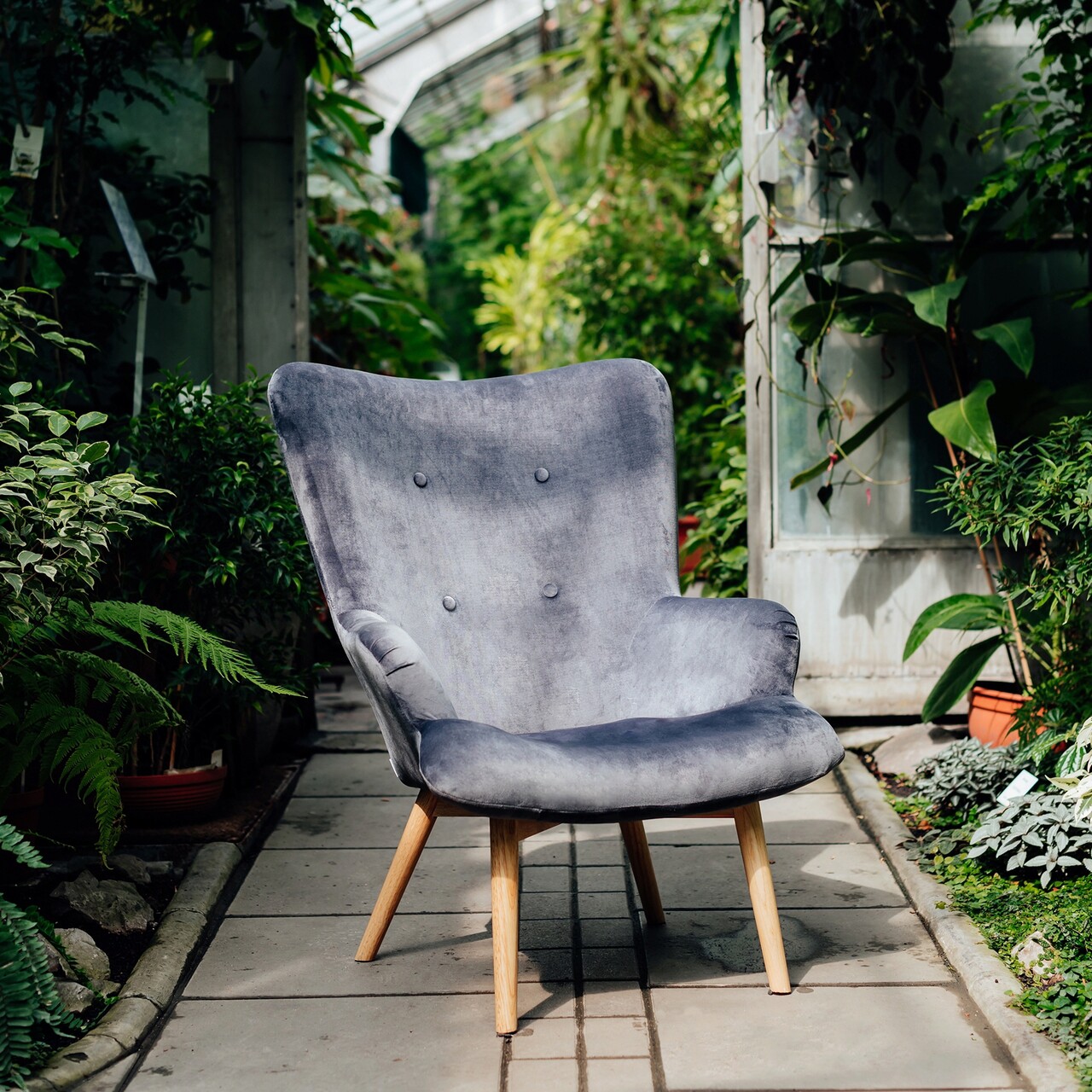 Fotoliu Moss, Homla, 70x48x95 cm, lemn/poliester, gri/natur