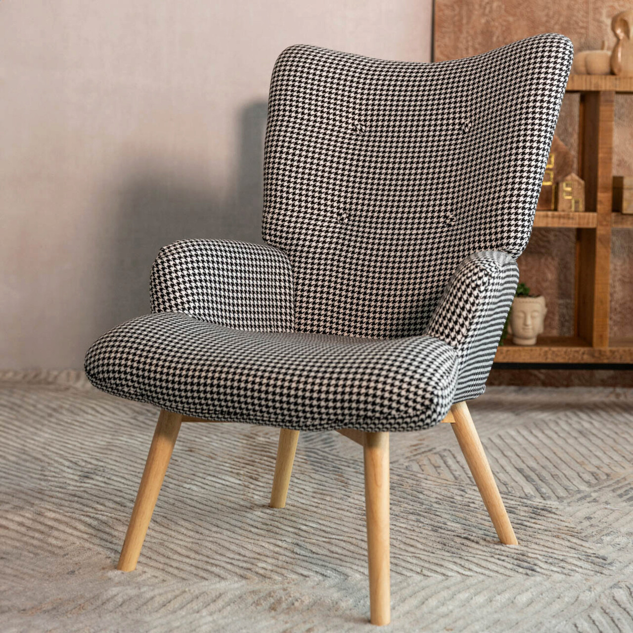 Fotoliu Moss, Homla, 70x55x95 cm, poliester, alb/negru