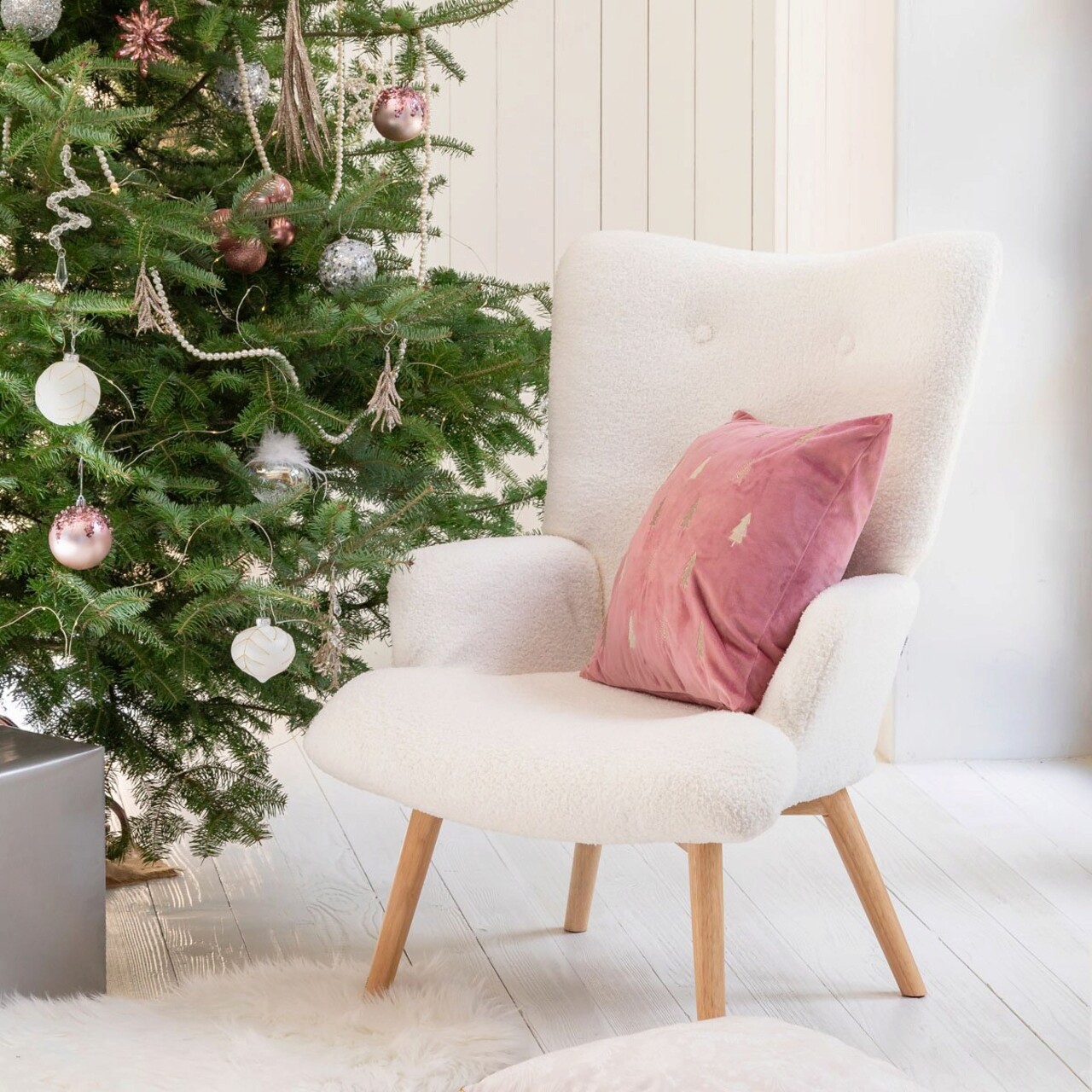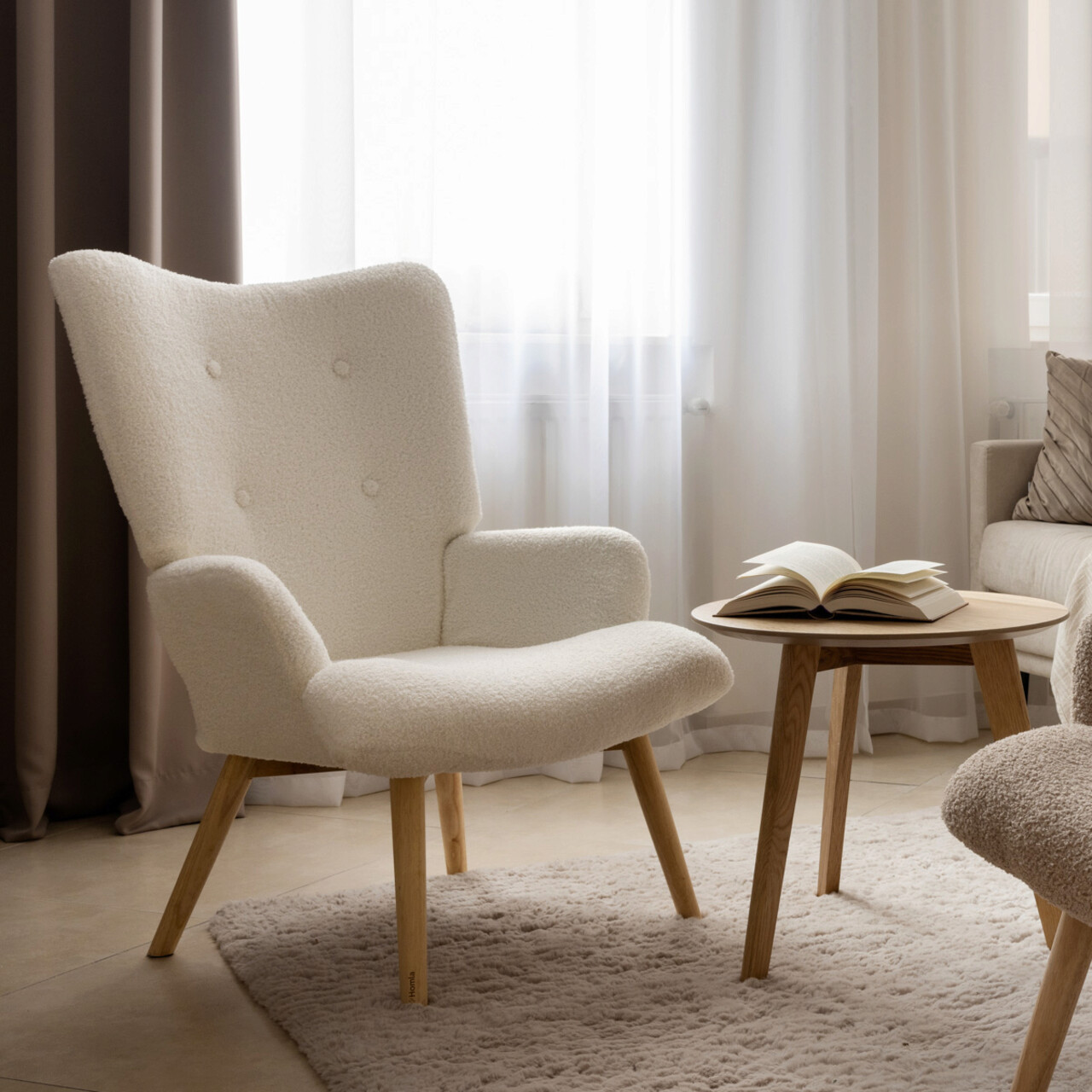 Fotoliu Moss Teddy Boucle, Homla, 70x48x95 cm, lemn/poliester, alb