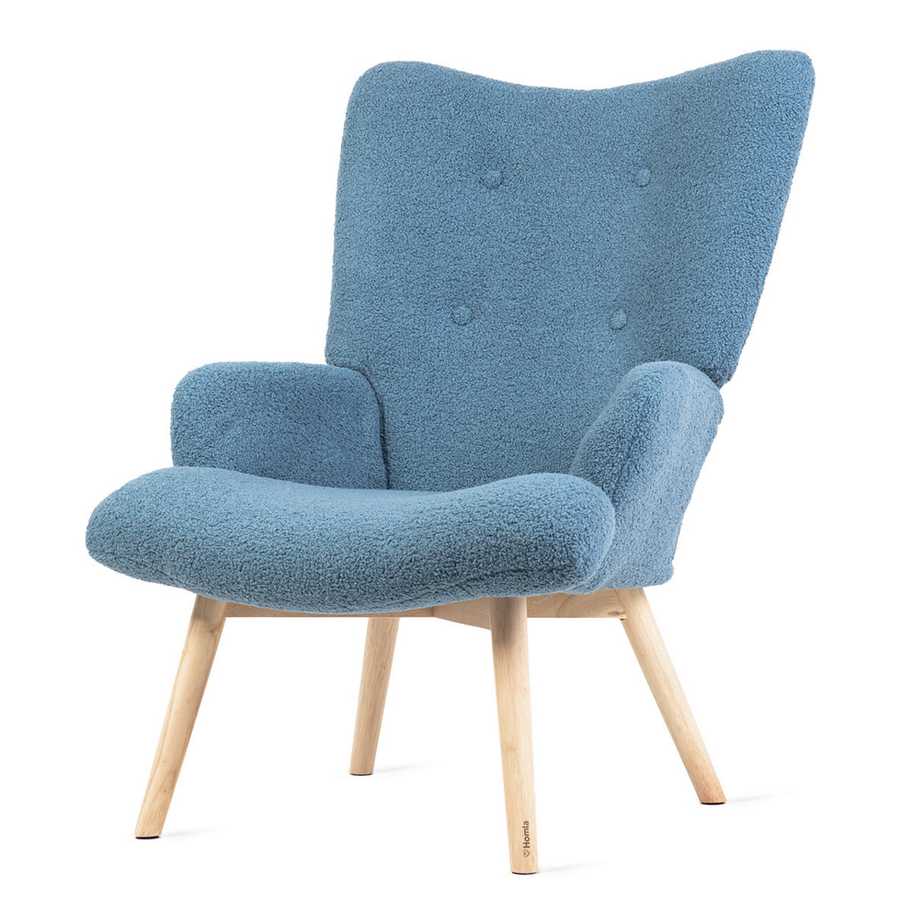 Fotoliu Moss Teddy Boucle, Homla, 70x48x95 cm, lemn/poliester, albastru deschis