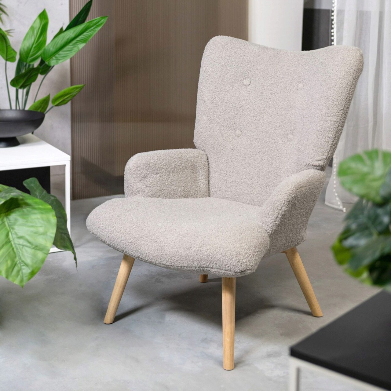 Fotoliu Moss Teddy Boucle, Homla, 70x48x95 cm, lemn/poliester, bej