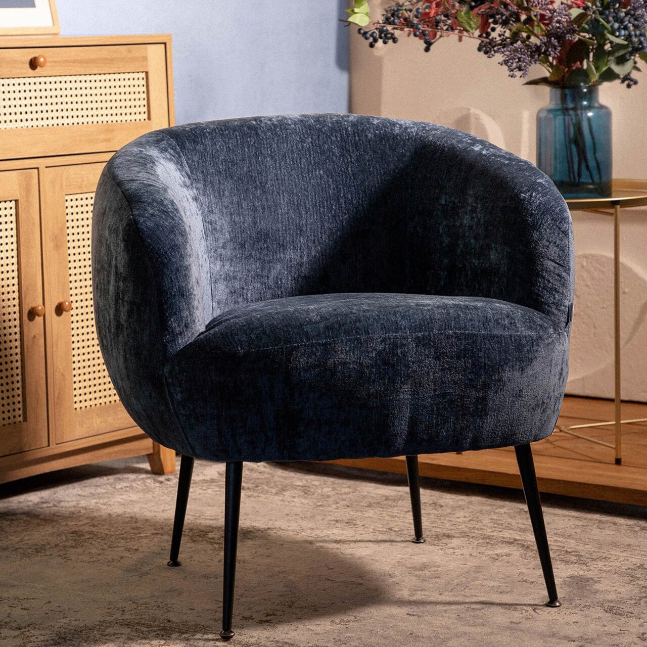 Fotoliu Pallstol, Homla, 72x70x74 cm, metal/tesatura Chenille, albastru