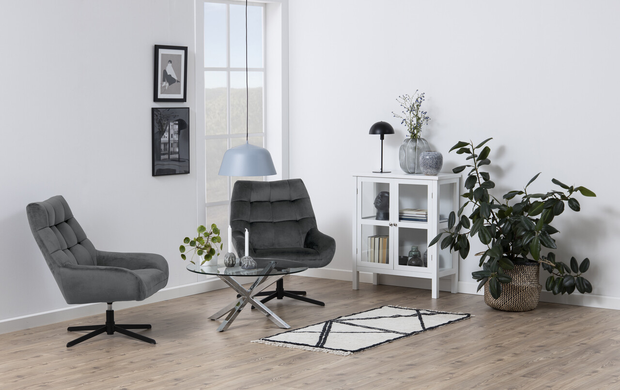 Fotoliu Paris, Actona, 73x76x89 cm, rotativ, catifea/otel, gri inchis