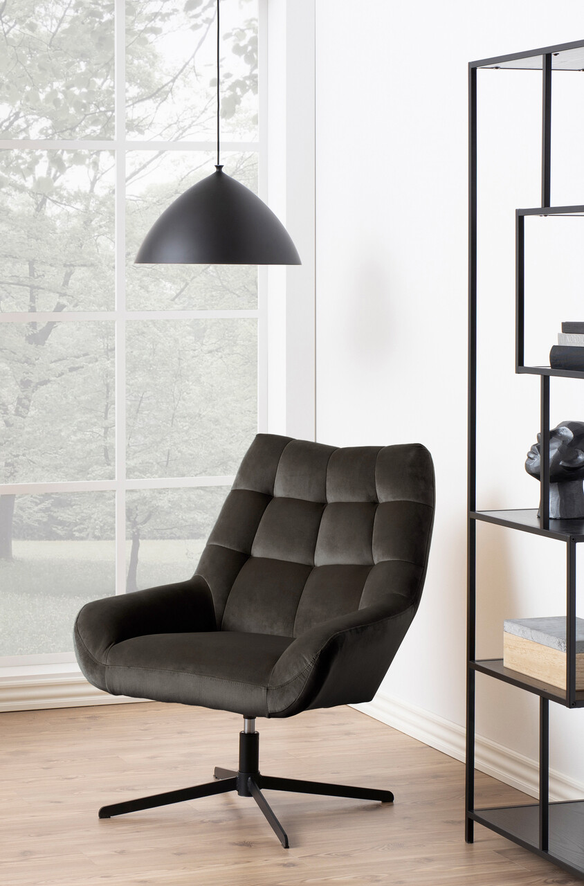 Fotoliu Paris, Actona, 73x76x89 cm, rotativ, catifea/otel, gri maro