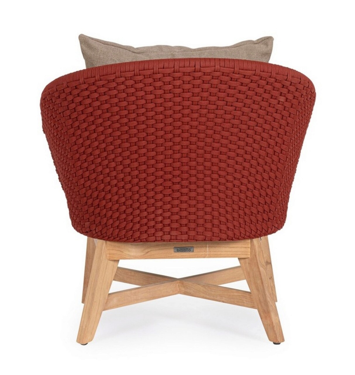 Fotoliu pentru gradina/terasa Coachella, Bizzotto, 76 x 78 x 77 cm, aluminiu/lemn de tec/olefin, rosu scarlet