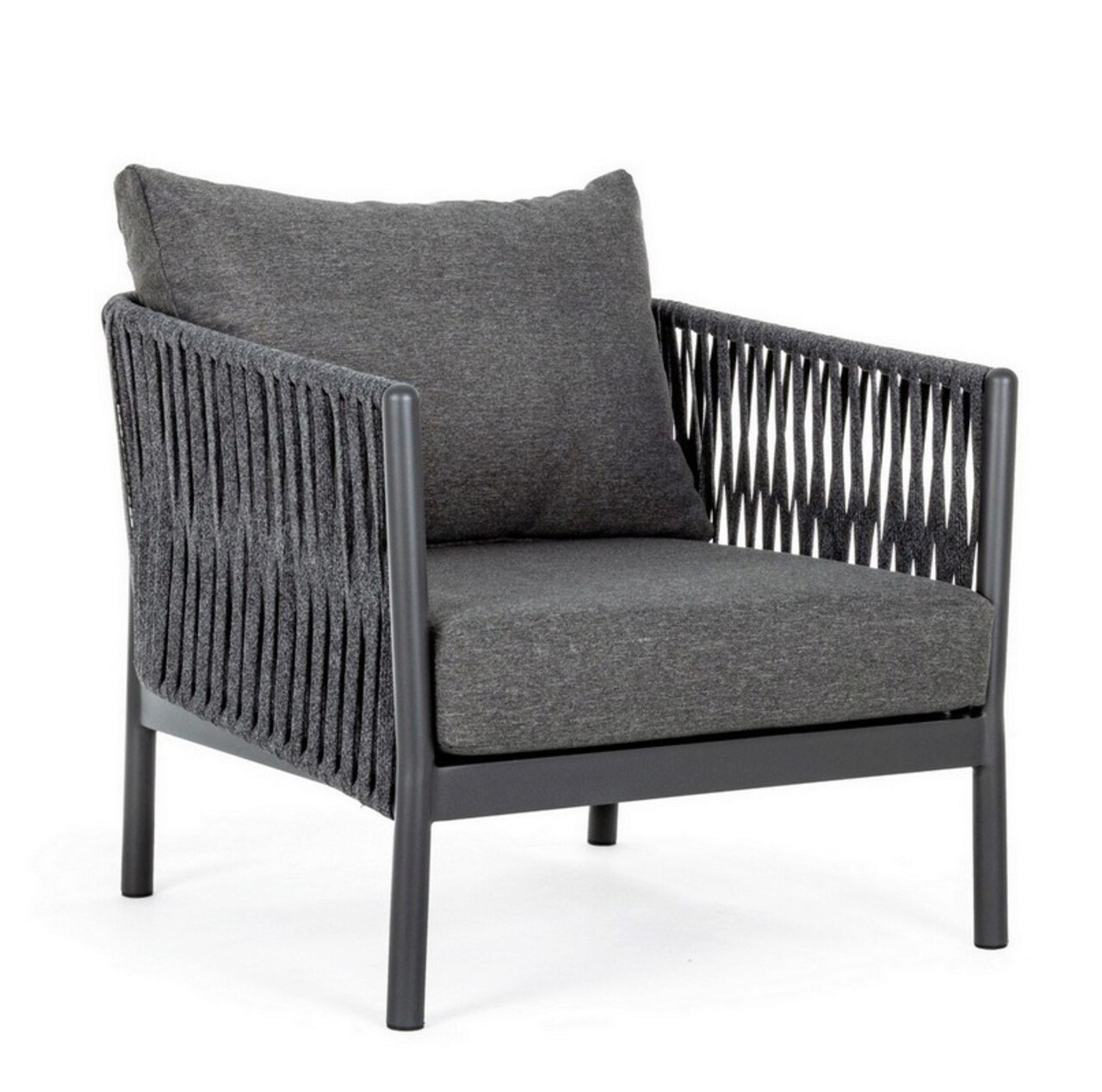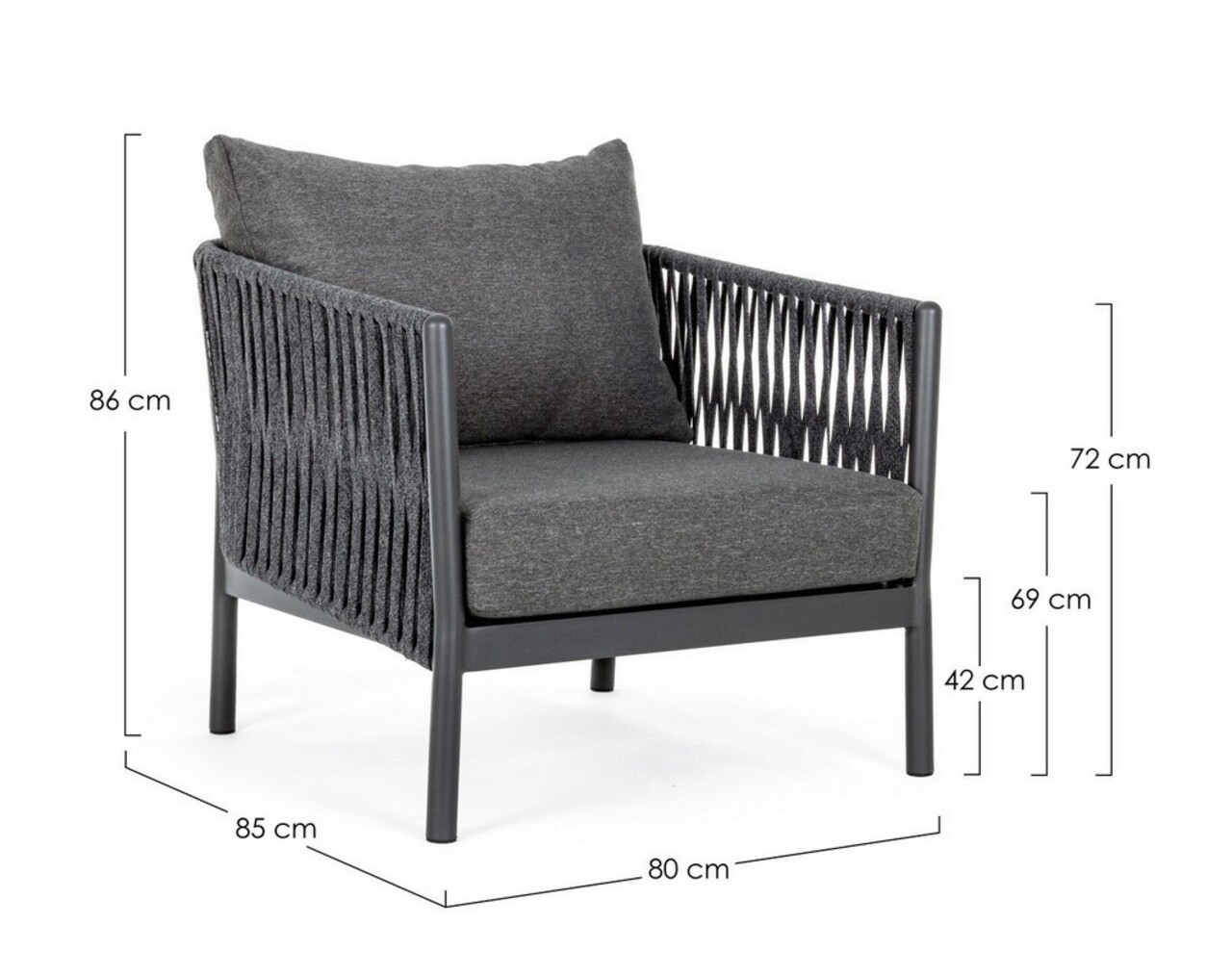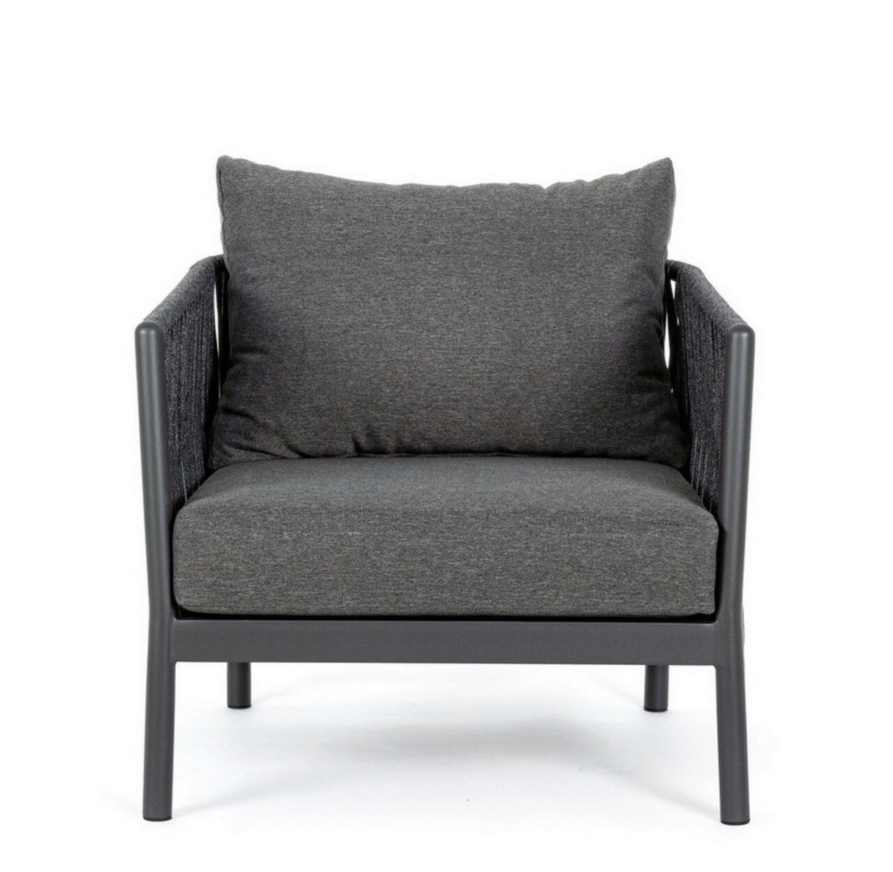 Fotoliu pentru gradina/terasa Florencia, Bizzotto, 80 x 85 x 86 cm, aluminiu/tesatura ofelin/tetoron, gri carbune