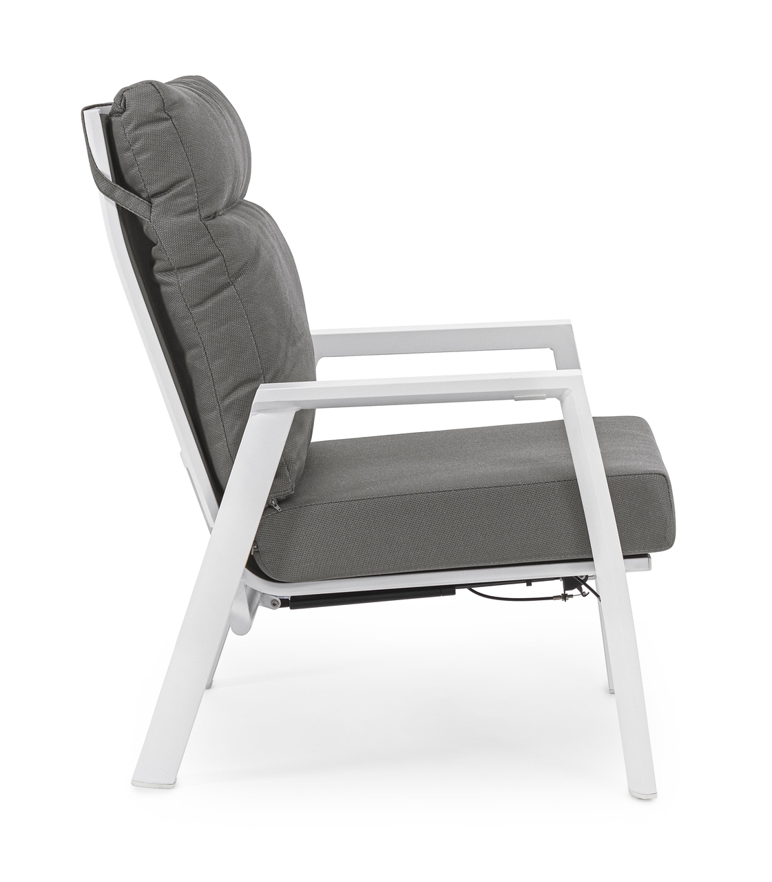 Fotoliu pentru gradina/terasa Kledi, Bizzotto, 72 x 81 x 98 cm, spatar ajustabil, aluminiu/textilena 1x1, alb