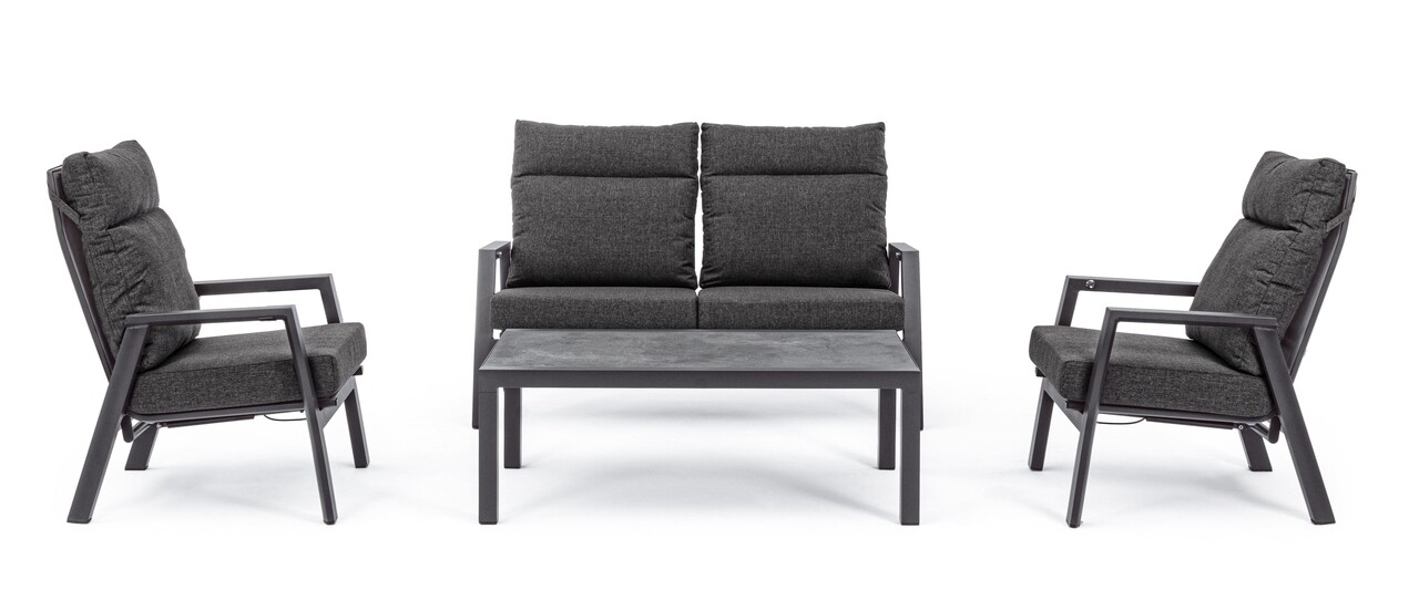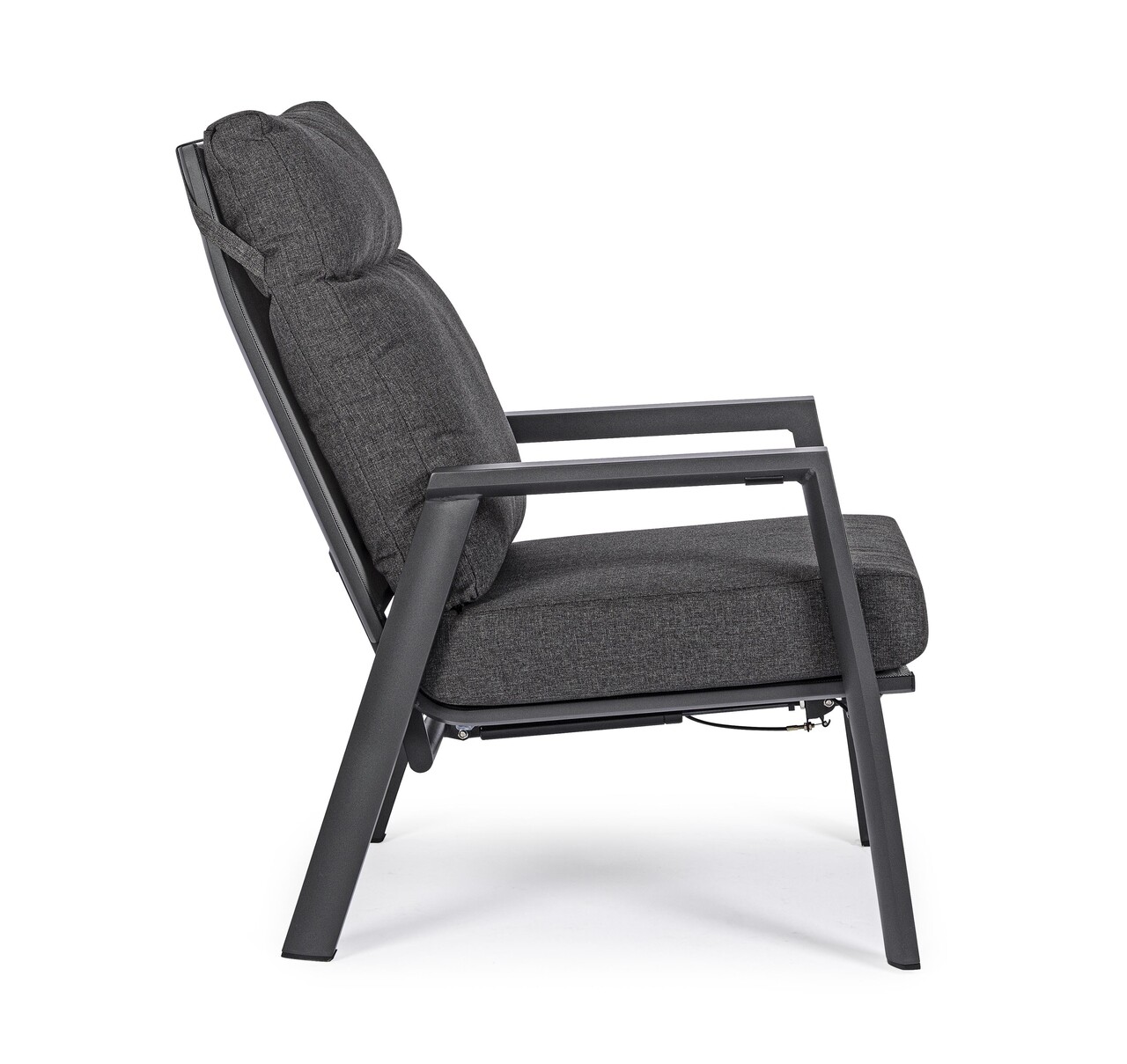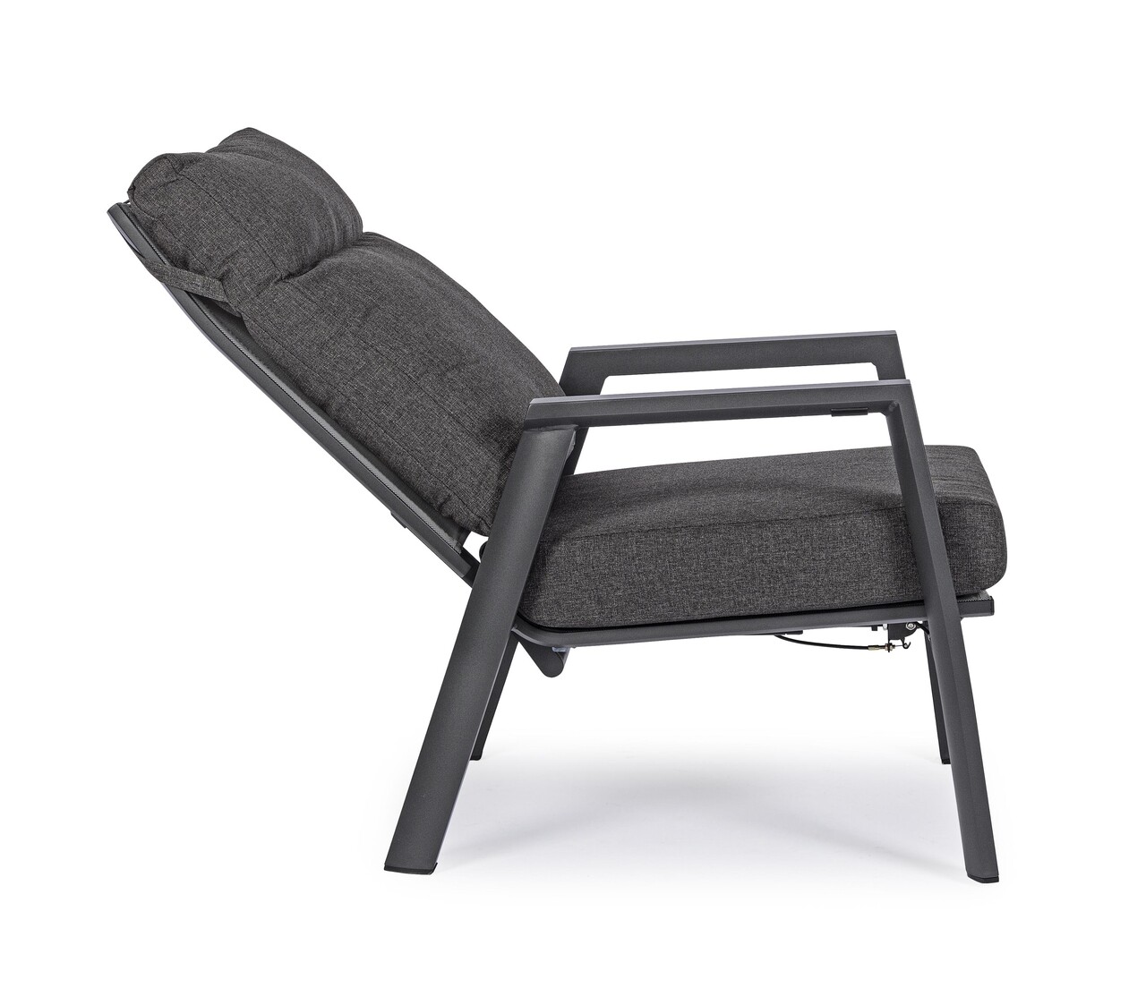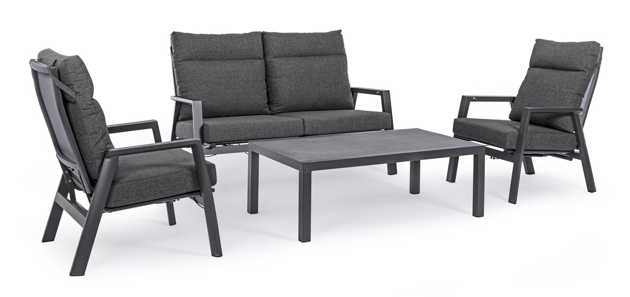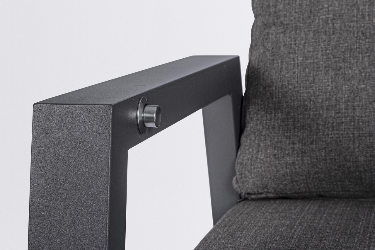 Fotoliu pentru gradina/terasa Kledi, Bizzotto, 72 x 81 x 98 cm, spatar ajustabil, aluminiu/textilena 1x1, gri carbune