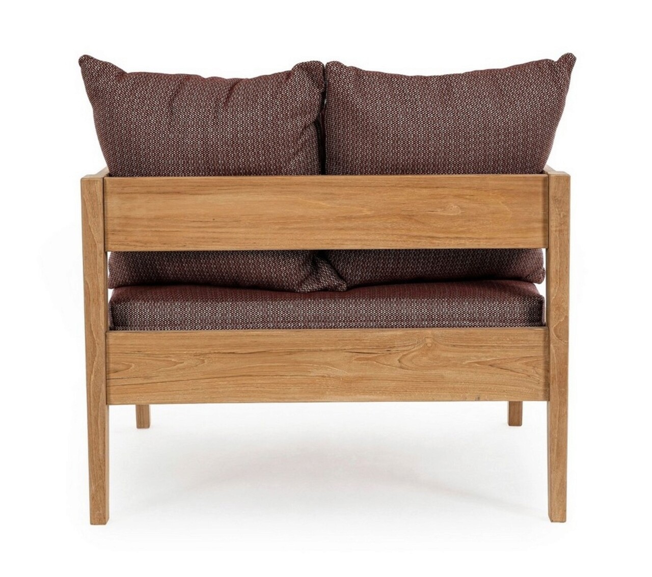 Fotoliu pentru gradina/terasa Kobo, Bizzotto, 90 x 90 x 79 cm, lemn de tec certificat Fsc/tesatura olefin, rosu wine