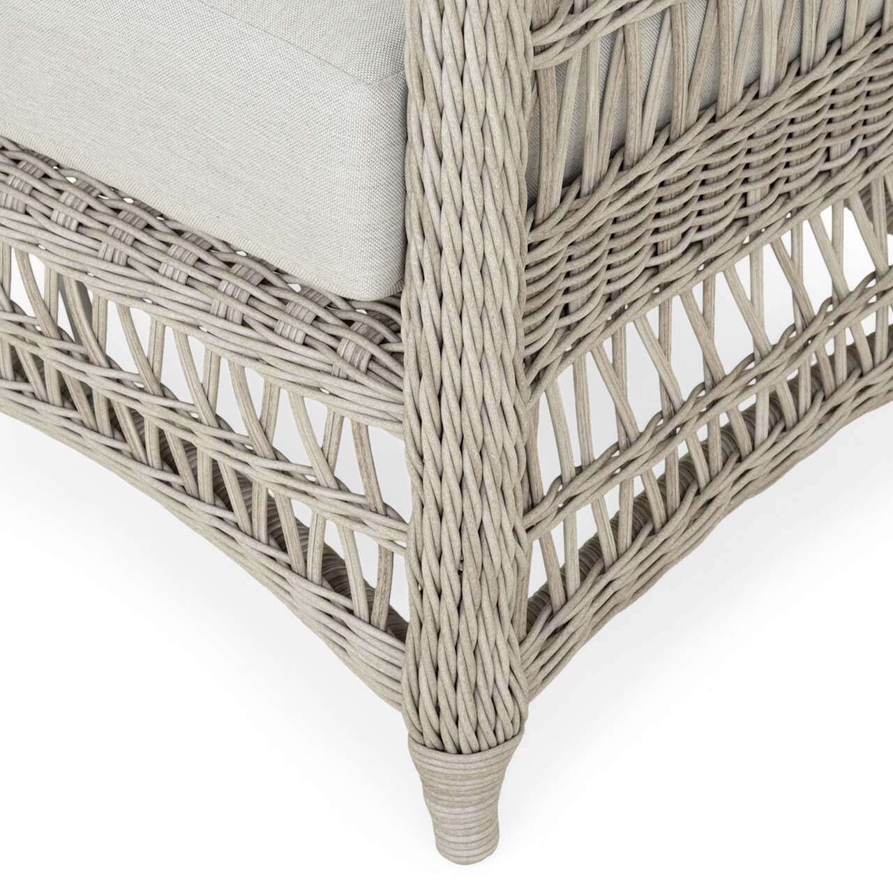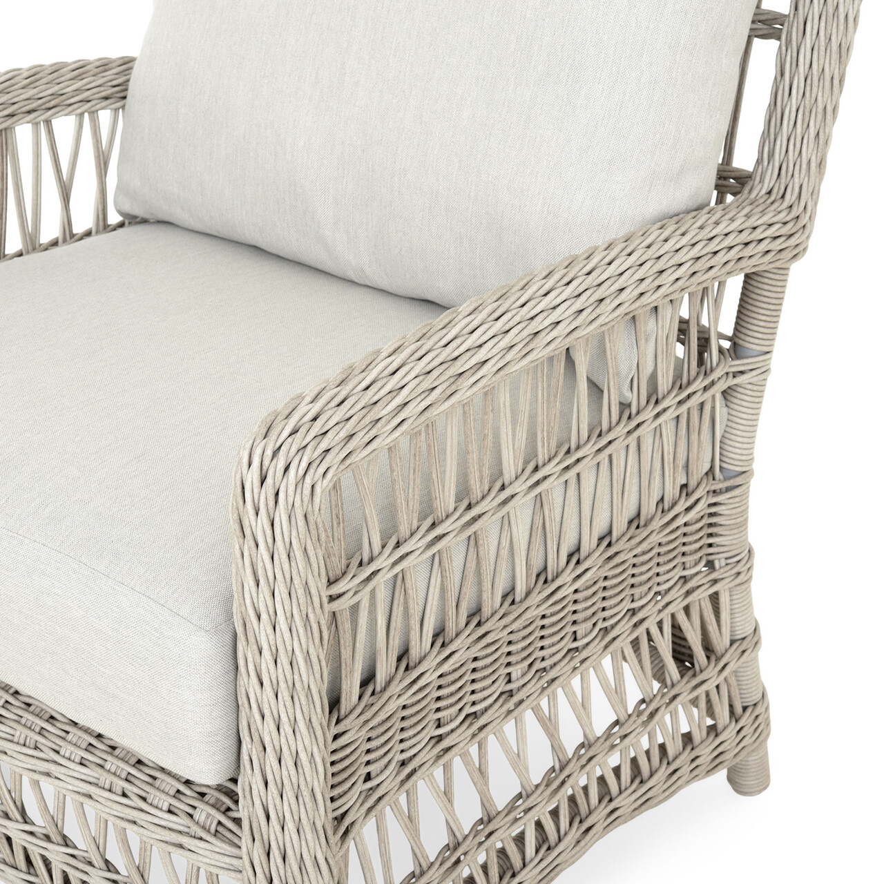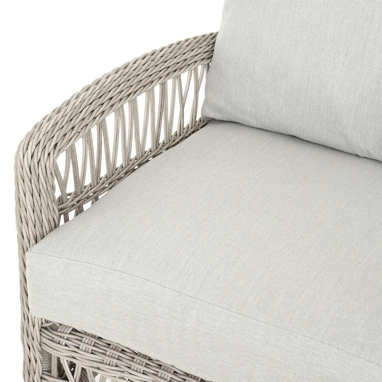 Realizat din structura solida de aluminiu vopsita in camp electrostatic si impletita cu fibre sintetice tip 'round wicker' cu protectie UV 3000h ce imita ratanul. Include perne premium imbracate in tesatura Olefin cu protectie impotriva umezelii si a razelor UV. Husele sunt prevazute cu fermoar pentru a fi mai usor de indepartat si curatat.