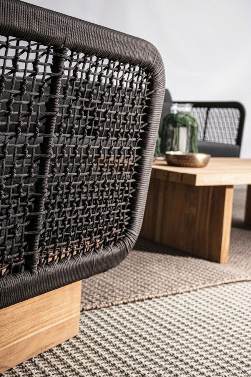 Fotoliu pentru gradina/terasa Xylia, Bizzotto, 76 x 83.5 x 80 cm, lemn de tec/tesatura pentru exterior, gri inchis