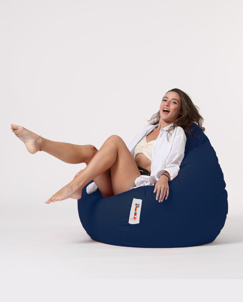 Fotoliu puf, Bean Bag, Ferndale Premium XXL, 115 x 130 cm, poliester impermeabil, albastru inchis