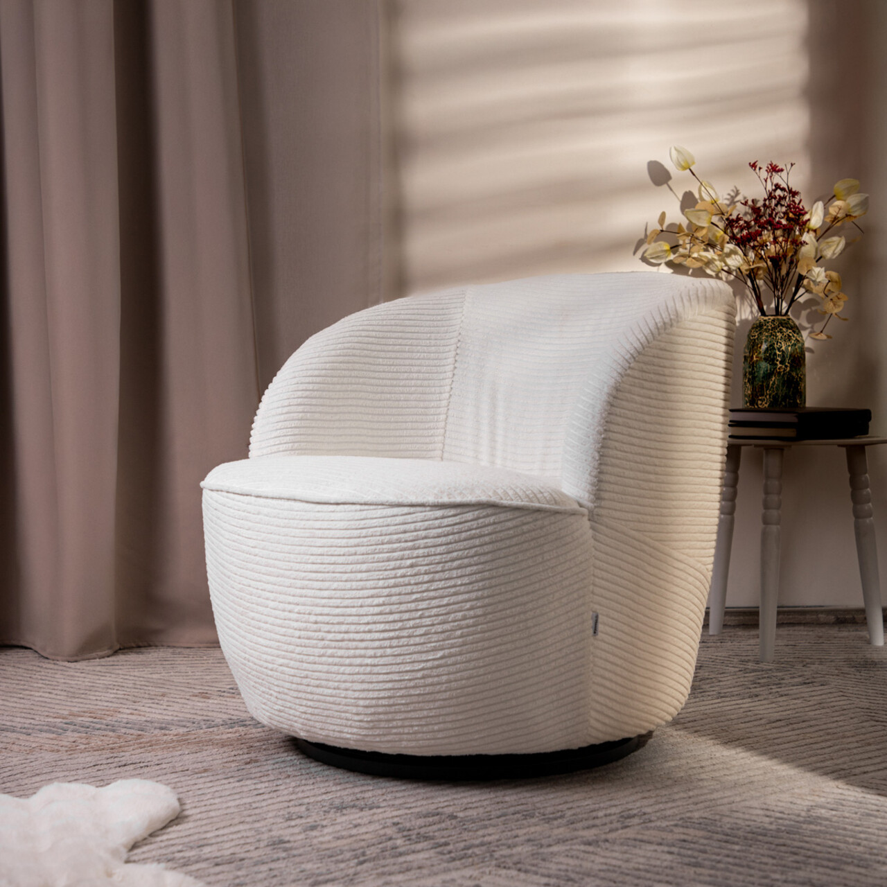 Fotoliu Svingen Faso, Homla, 65.5x77x69 cm, MDF/catifea din poliester, alb