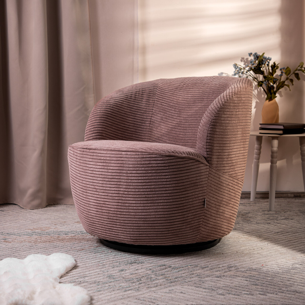 Fotoliu Svingen Faso, Homla, 65.5x77x69 cm, MDF/catifea din poliester, roz