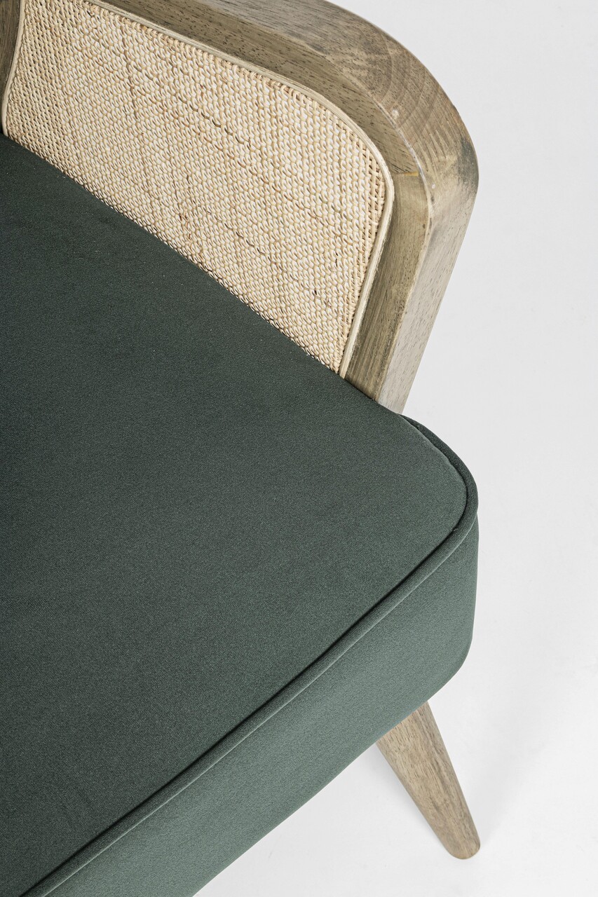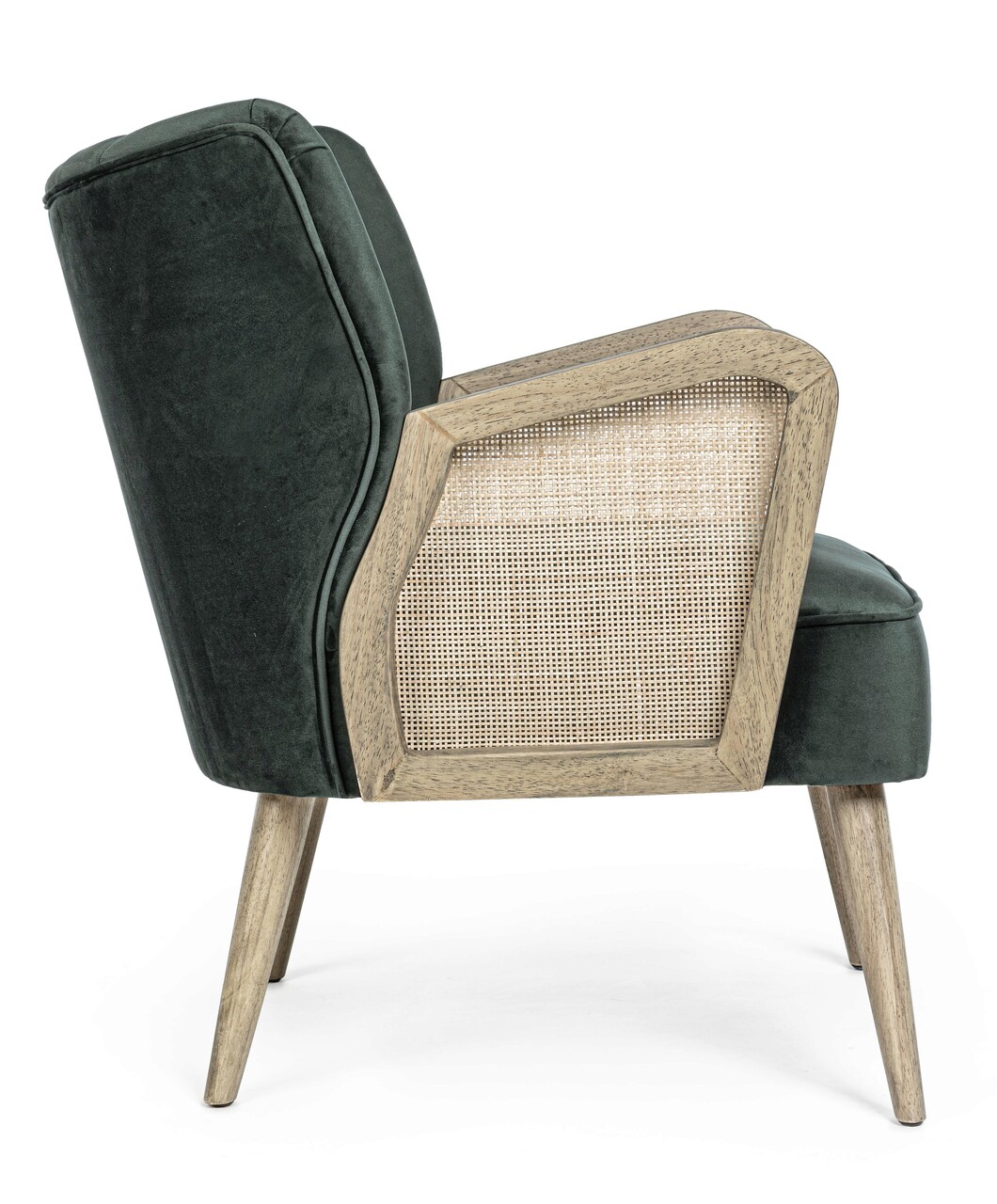 Fotoliu Virna, Bizzotto, 64 x 71 x 79 cm, lemn de pin/ratan/catifea, verde