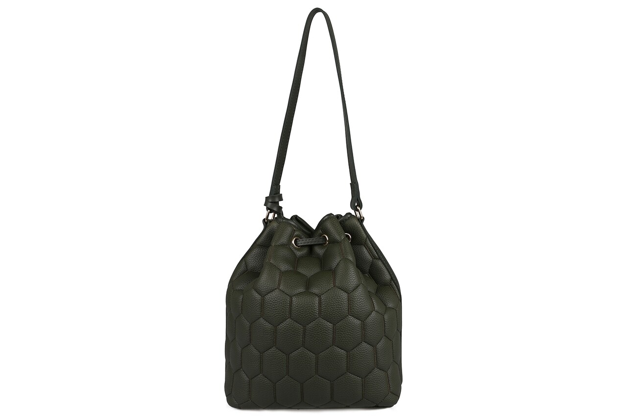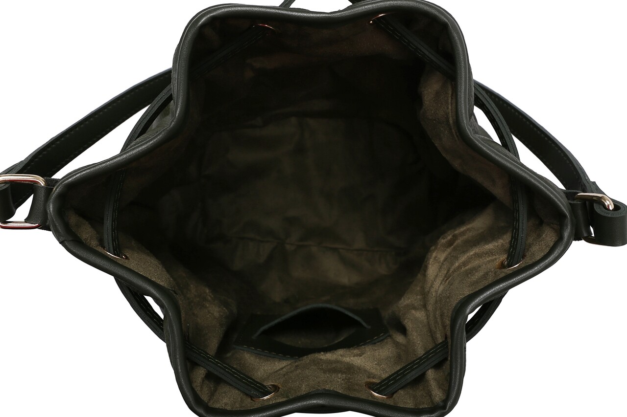 Geanta este foarte incapatoare, are bareta pentru umar, buzunar frontal si se inchide cu snur.