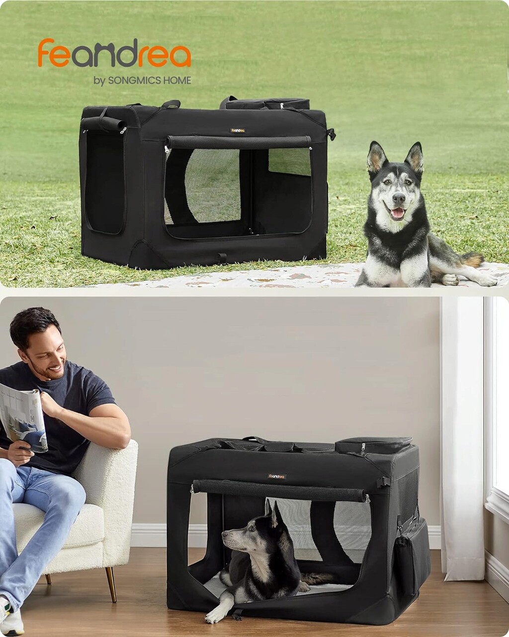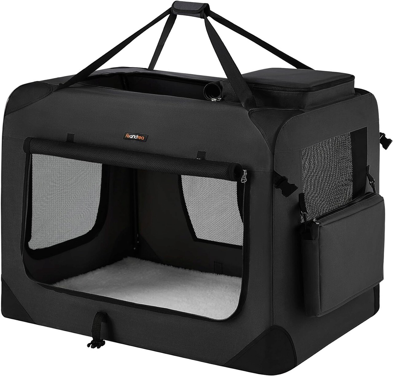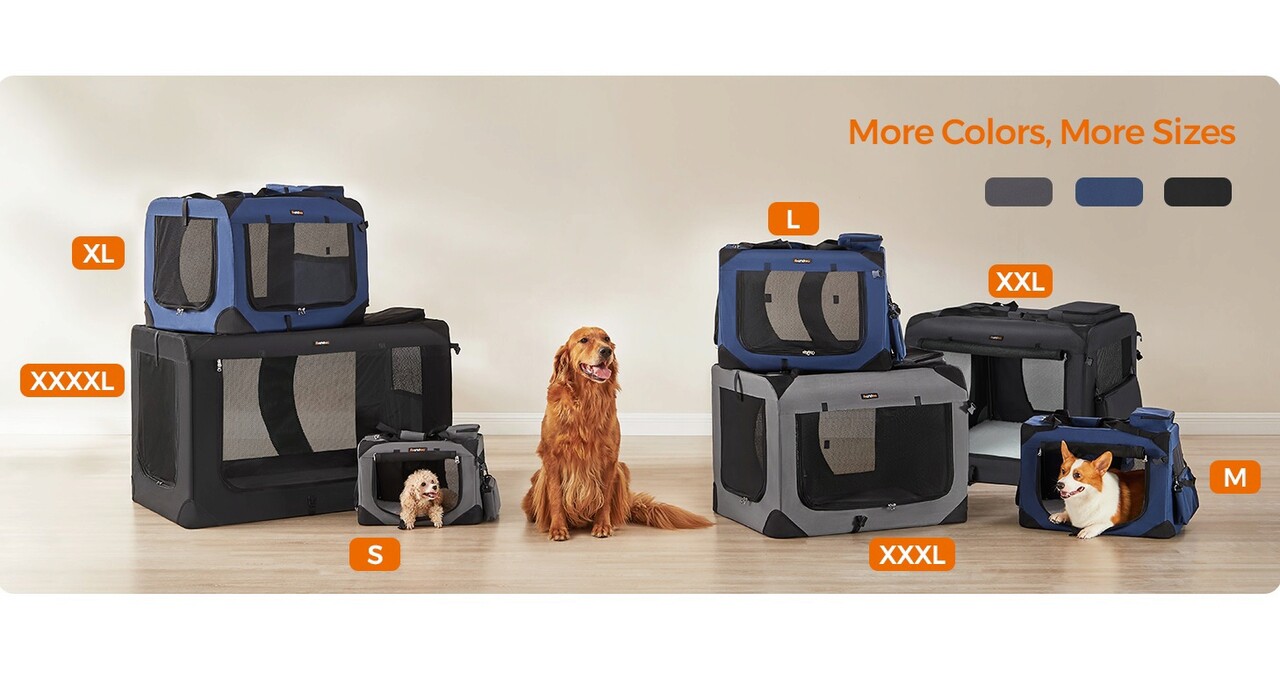 Geanta de transport pentru animale de companie XXL, Feandrea, max 32 kg, 91x63x63 cm, tesatura Oxford/otel, negru
