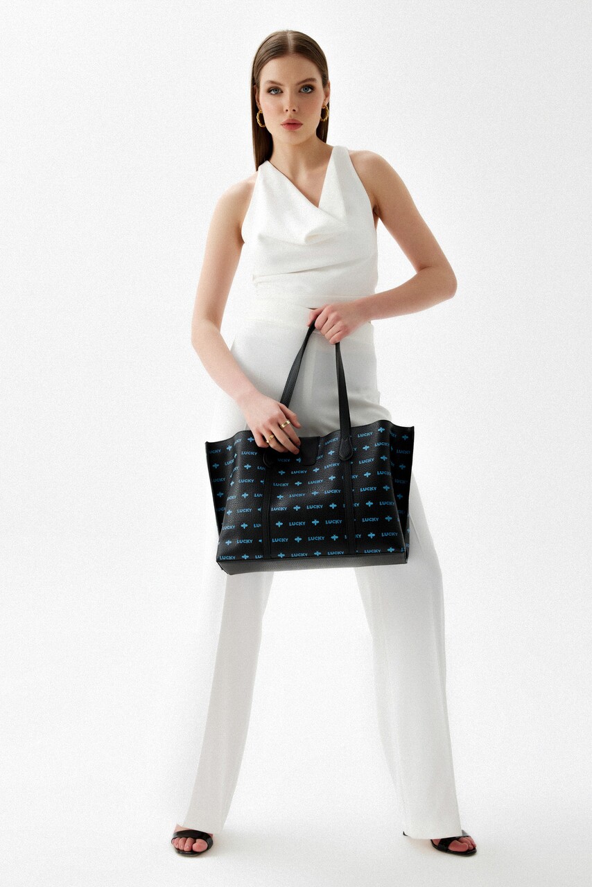 Geanta, Lucky Bees, 346 Black Dark Blue, piele ecologica, negru/bleumarin
