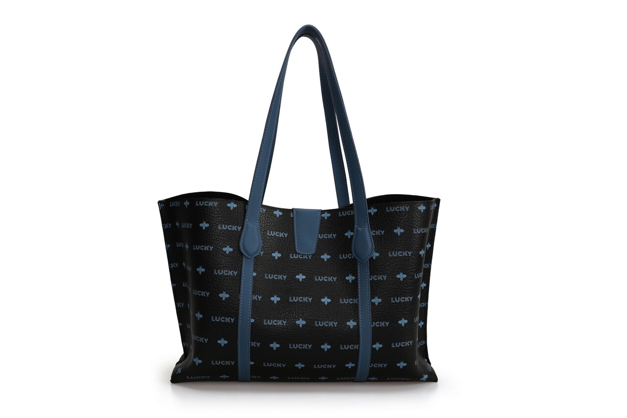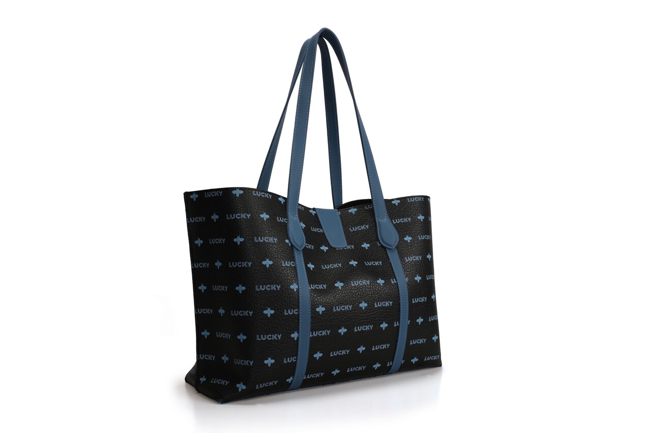 Geanta, Lucky Bees, 346 Dark Blue Black, piele ecologica, bleumarin/negru