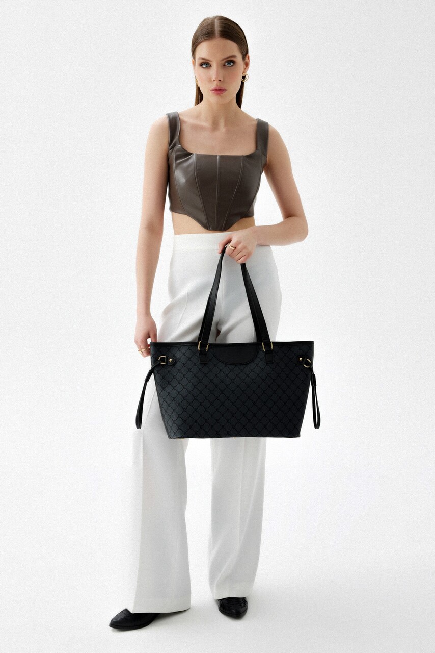 Geanta, Lucky Bees, 355 Grey Black, piele ecologica, gri/negru