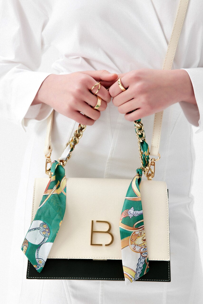 Geanta, Lucky Bees, 918 Cream Dark Green, piele ecologica, crem/verde