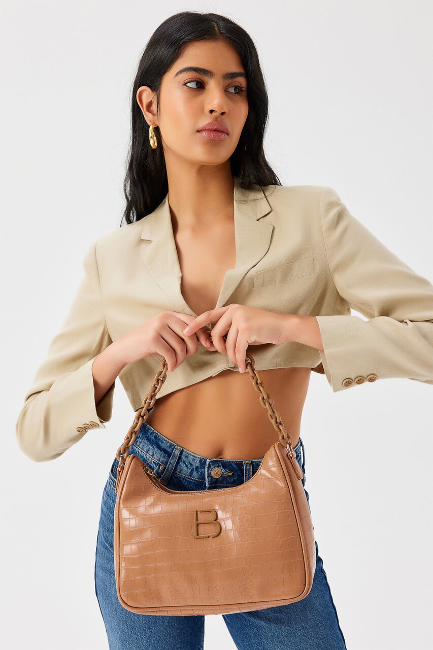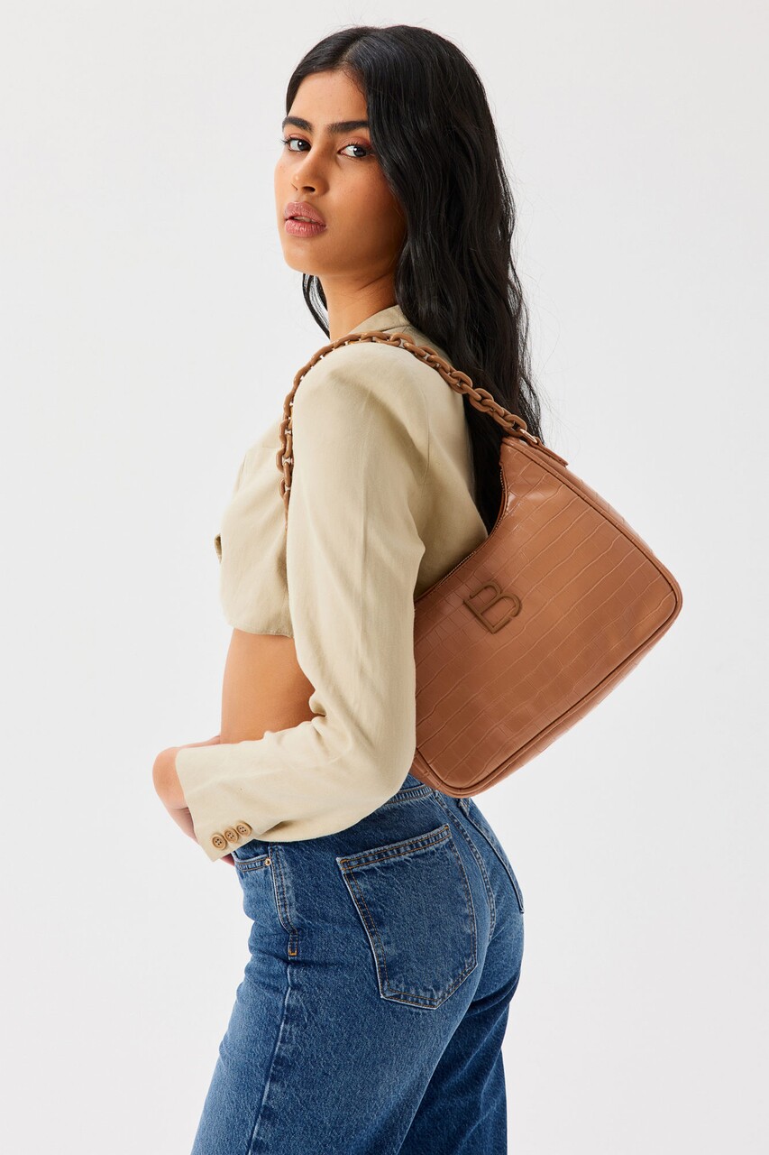 Geanta, Lucky Bees, Croco Tan, piele ecologica, maro