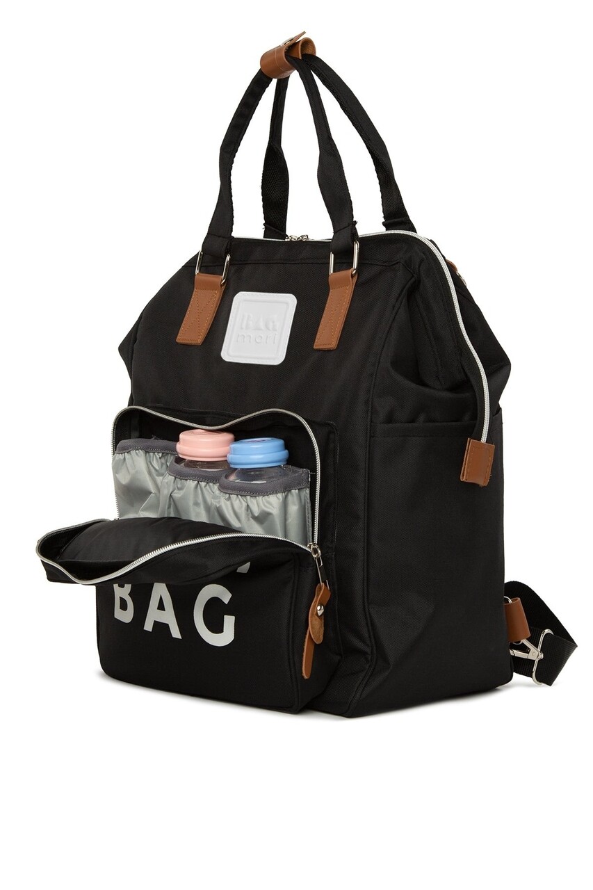 Geanta pentru pampersi, Bagmori, 5163 - 62027 - Black, textil, negru/alb