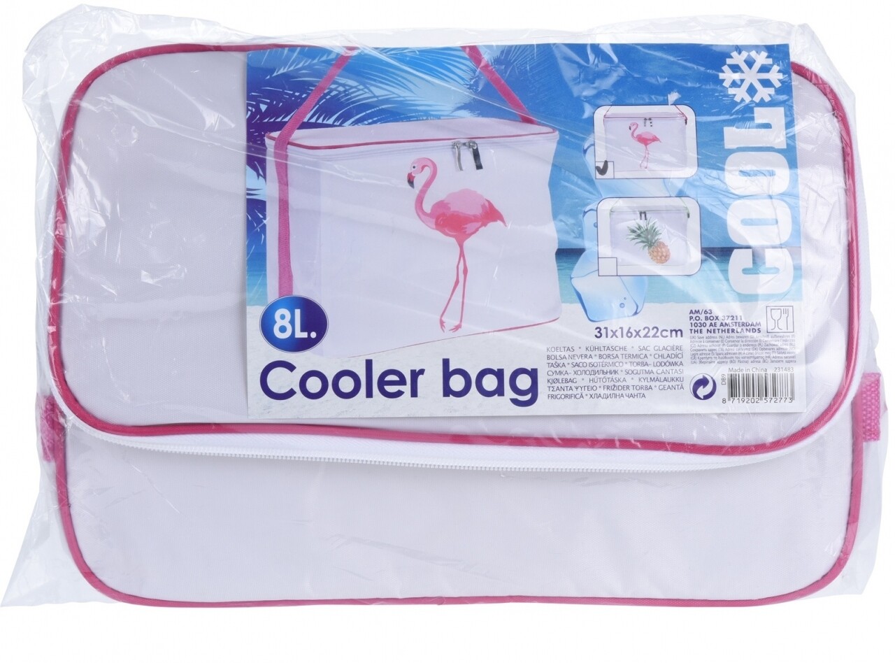 Geanta termoizolanta Flamingo, 8L, poliester, alb/roz