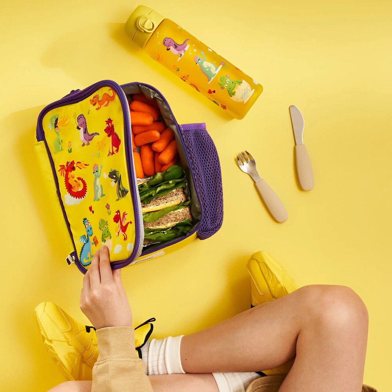 Geanta termoizolanta pentru pranz, MarcaIon8, Cu design imprimat de inalta calitate si fermoar cu acces usor pe 3 fete. Geanta de pranz pentru copii are, De asemenea, Un buzunar extern din plasa elastica pentru sticle.